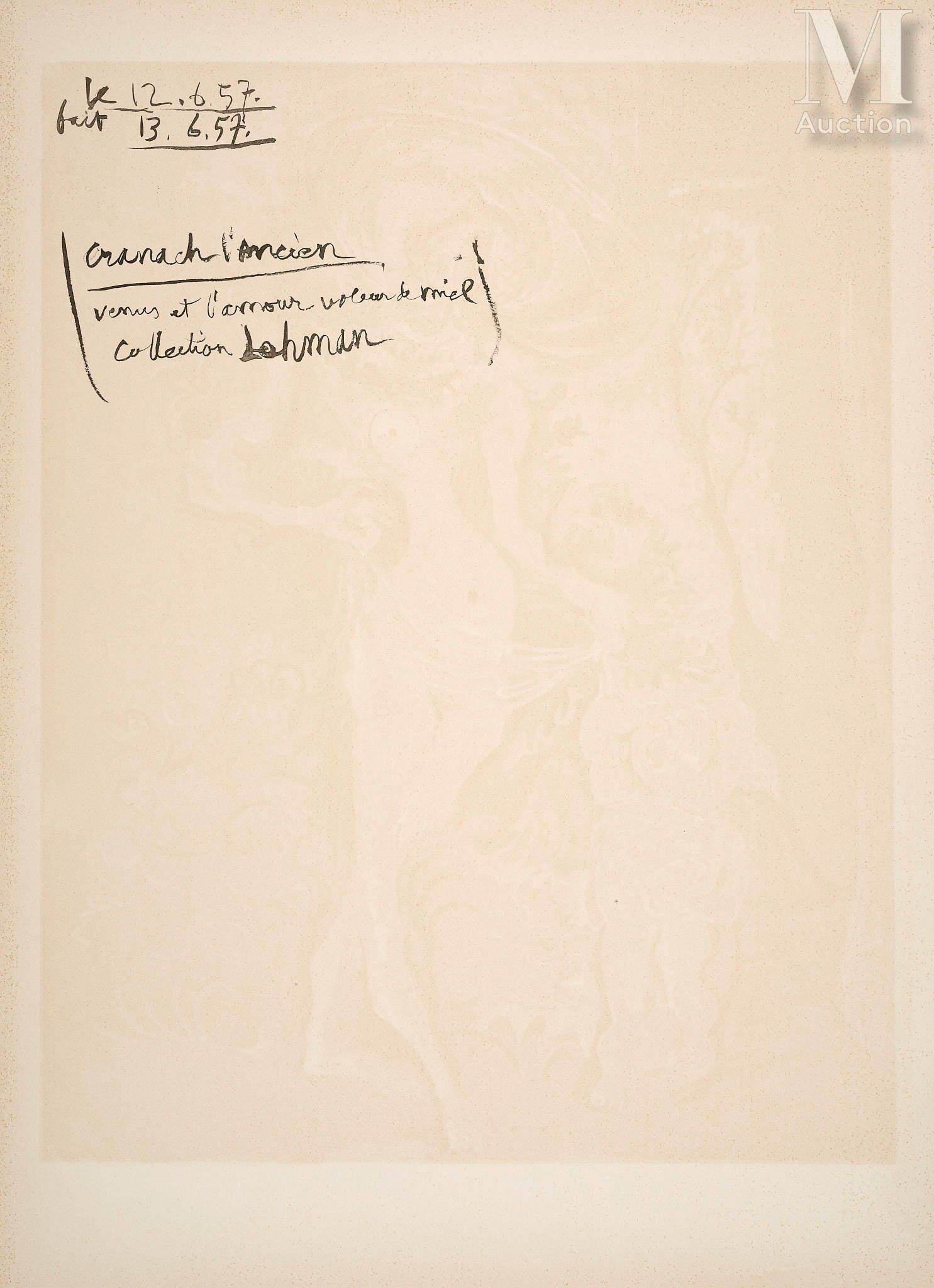 Lithographed inscription on verso: le 12.6.57 fait 13.6.57, Cranach l'ancien, Vénus et l'Amour voleur de miel, Lehman collection