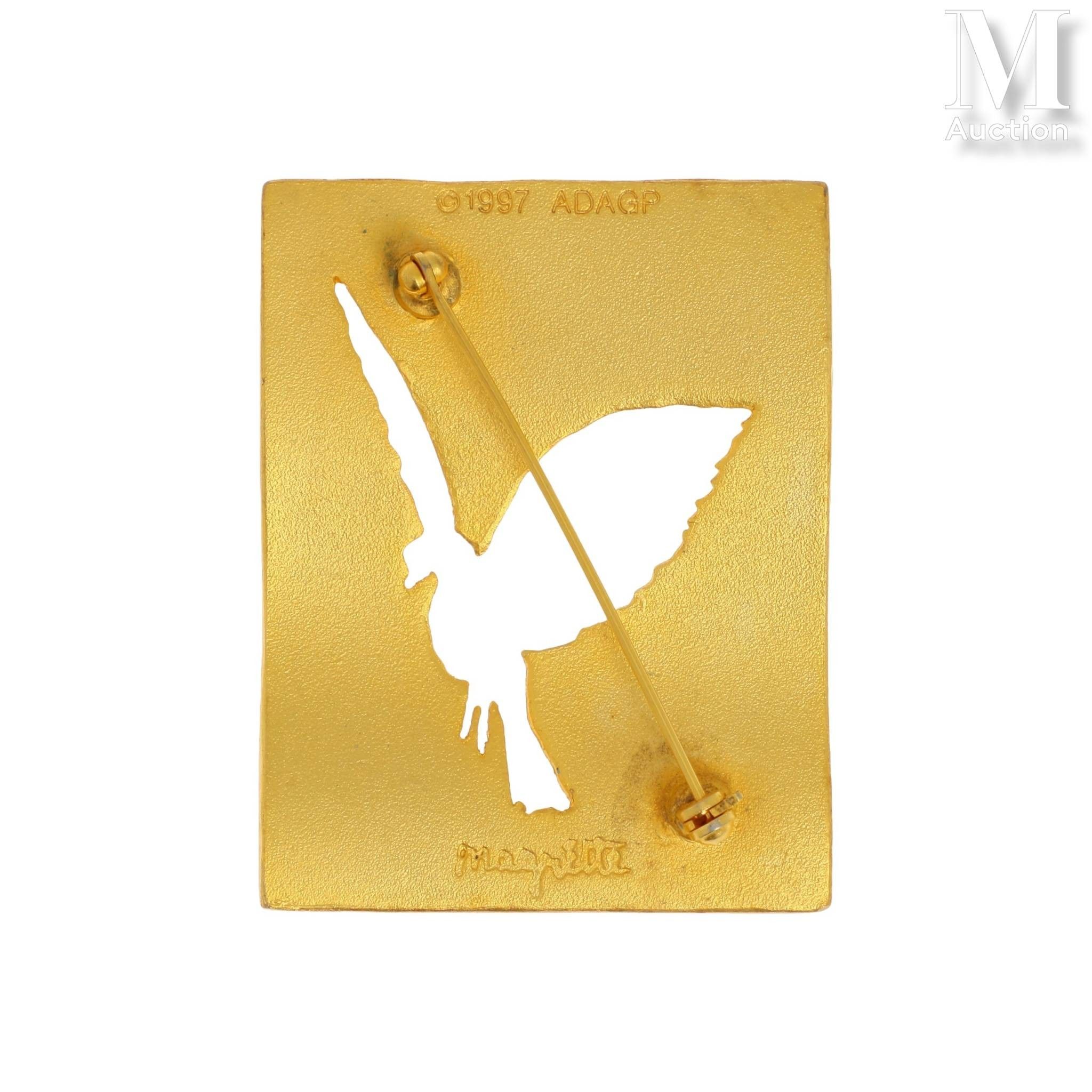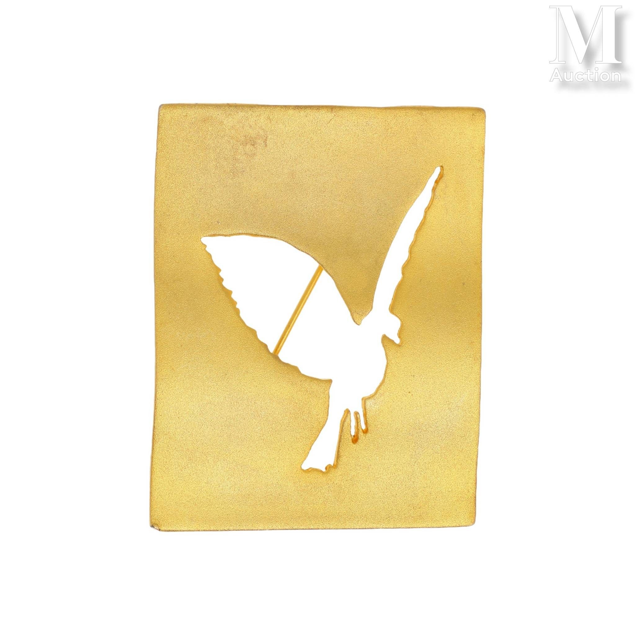 Brooch cut from a gilded, satin-finished and corrugated metal plate