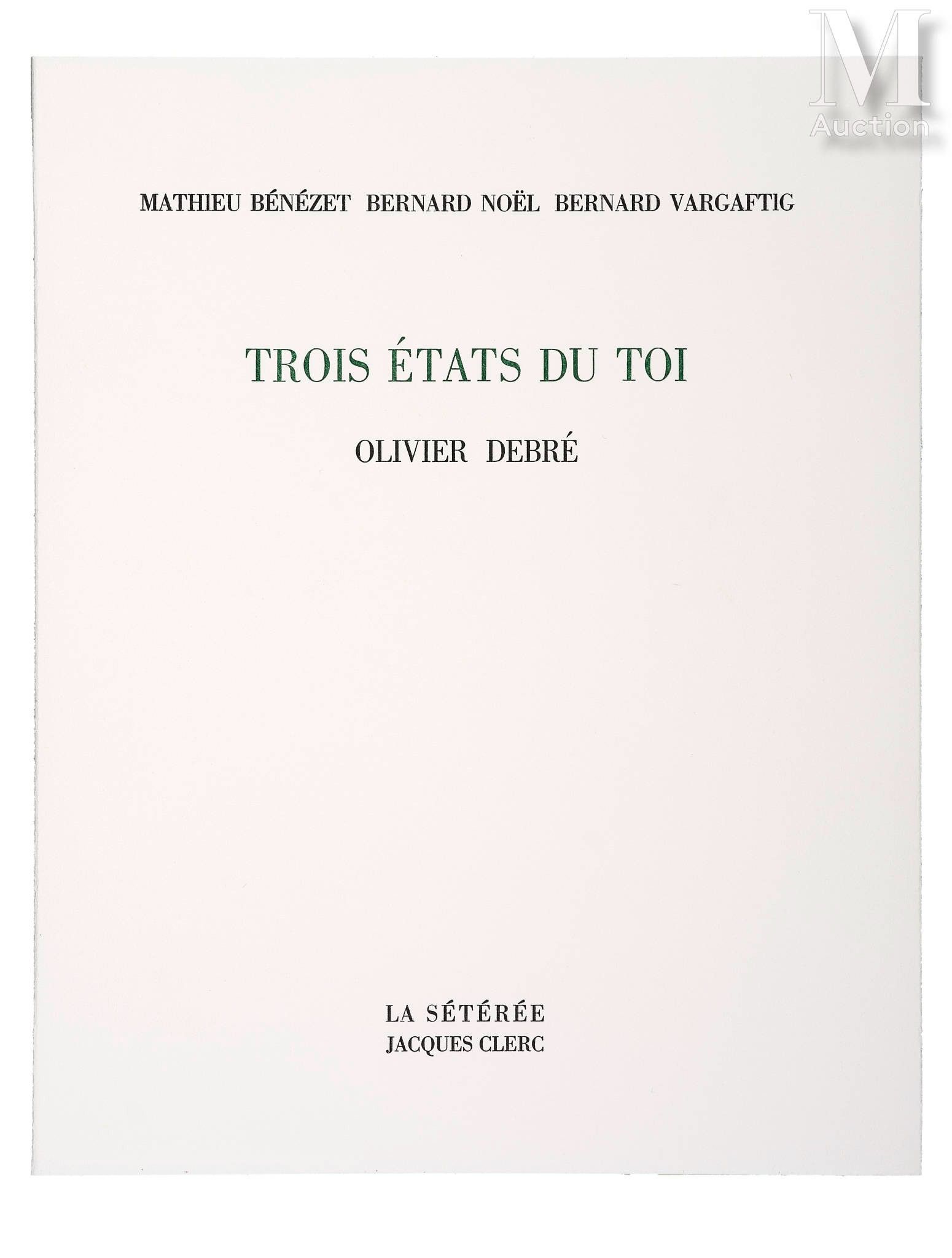 Unpublished poems by Mathieu Bénézet , Bernard Noël and Bernard Vargaftig accompanied by nine original lithographs by Olivier Debré produced on a press against proofs, (portraits of the authors).