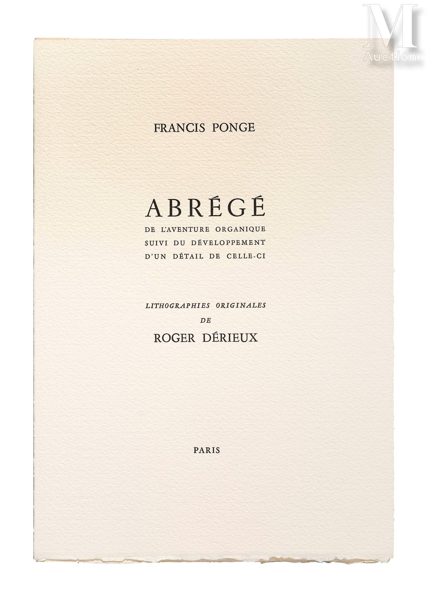 Francis Ponge, Roger Dérieux Abrégé de l'aventure organique