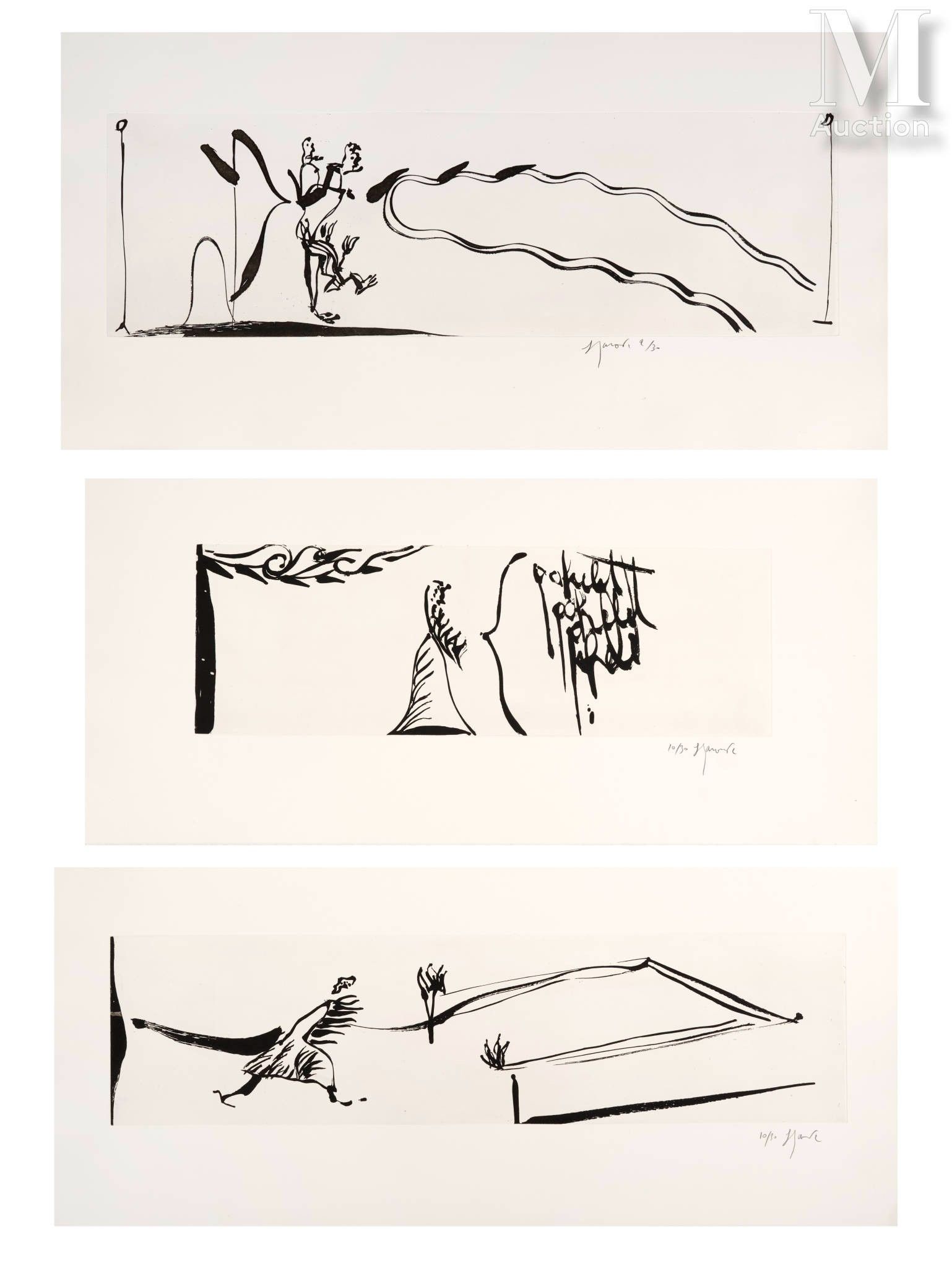 Set of one etching and drypoint and two sugar aquatints on vellum