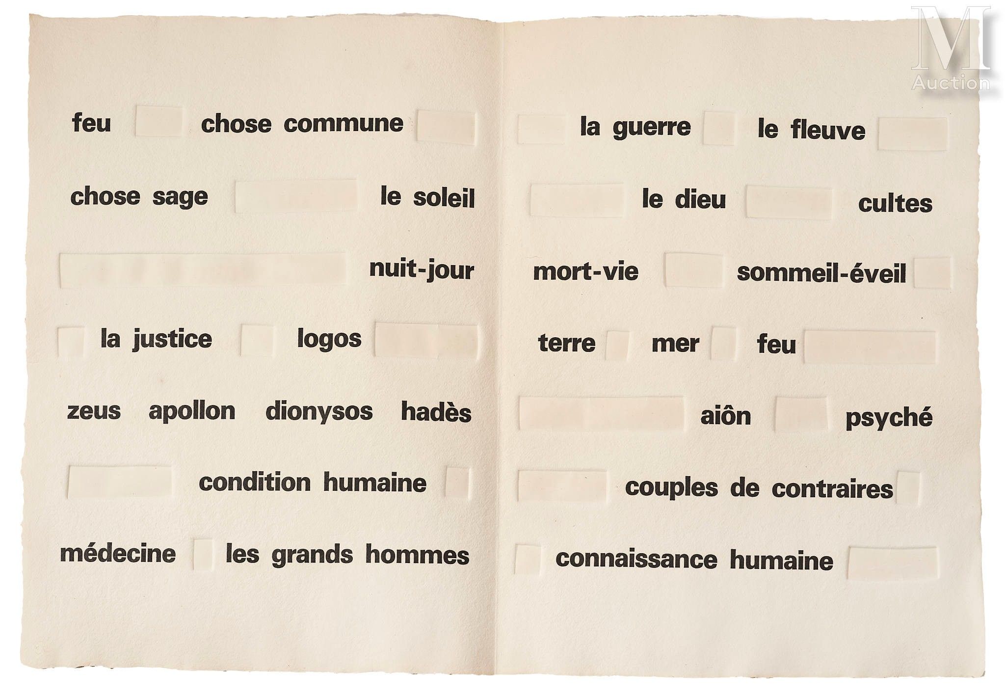 "From 1961 to 1967, the sculptor Étienne Hajdu illustrated five books using estampilles, i.e. metal shapes cut out by him and printed on the sheets where they are inscribed in relief (but the reverse is in relief), crushing the pulp of the Auvergne paper (but the reverse remains intact), thus giving it a light that dispenses with any inking" (50 livres illustrés depuis 1947, Paris, Bnf, 1988, cat. 29).