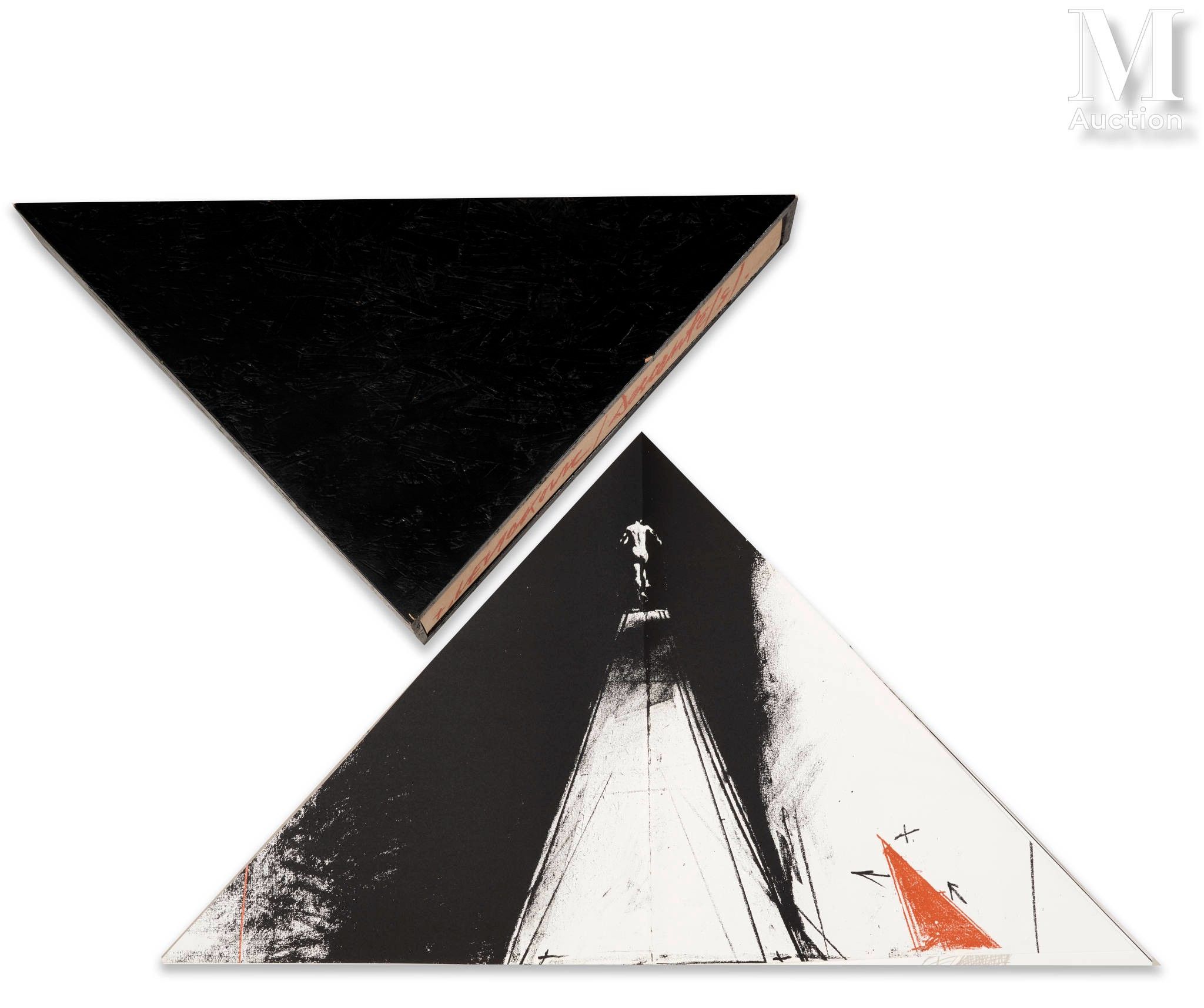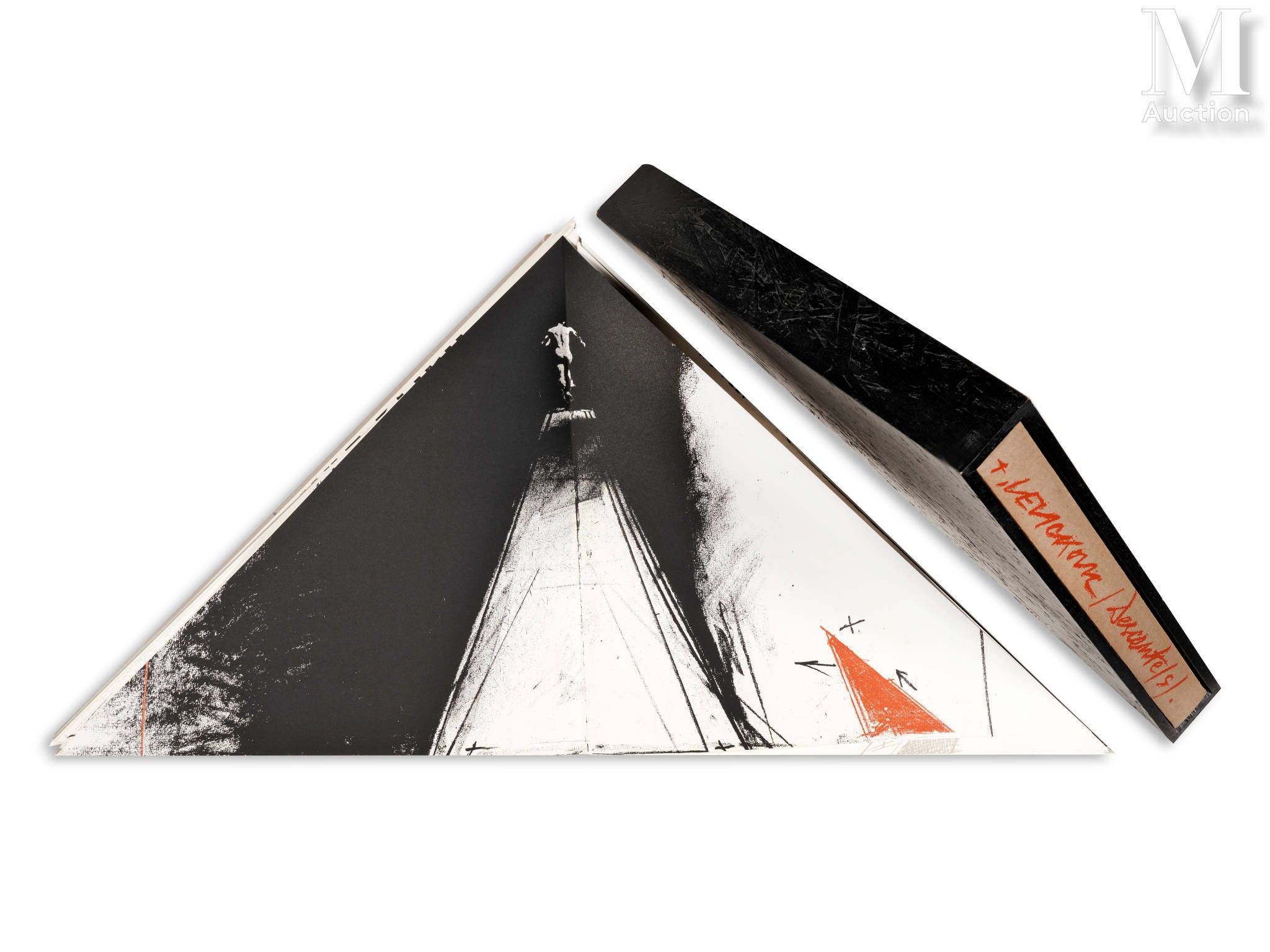 Triangular portfolio in black wooden case