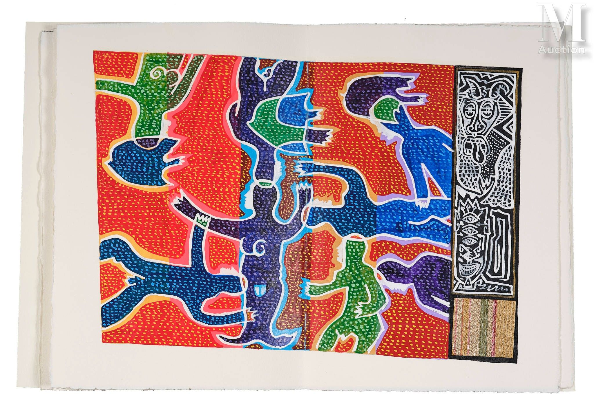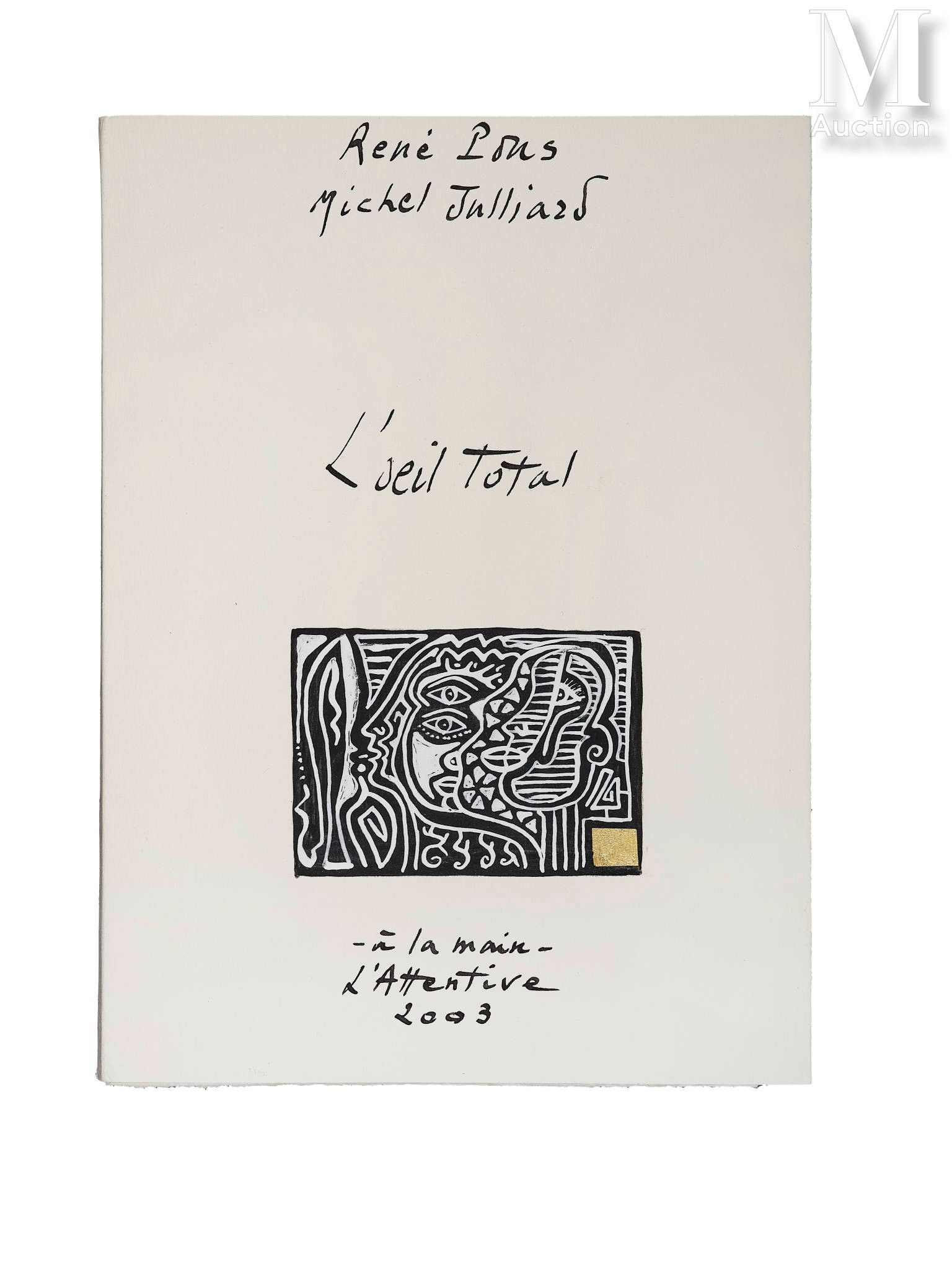 Manuscript (23 x 17 cm) calligraphy by René Pons, illustrated with 5 original paintings by Michel Julliard (including cover and one double-page spread). Produced in an edition of 19 copies justified and signed by the authors (no. 9).