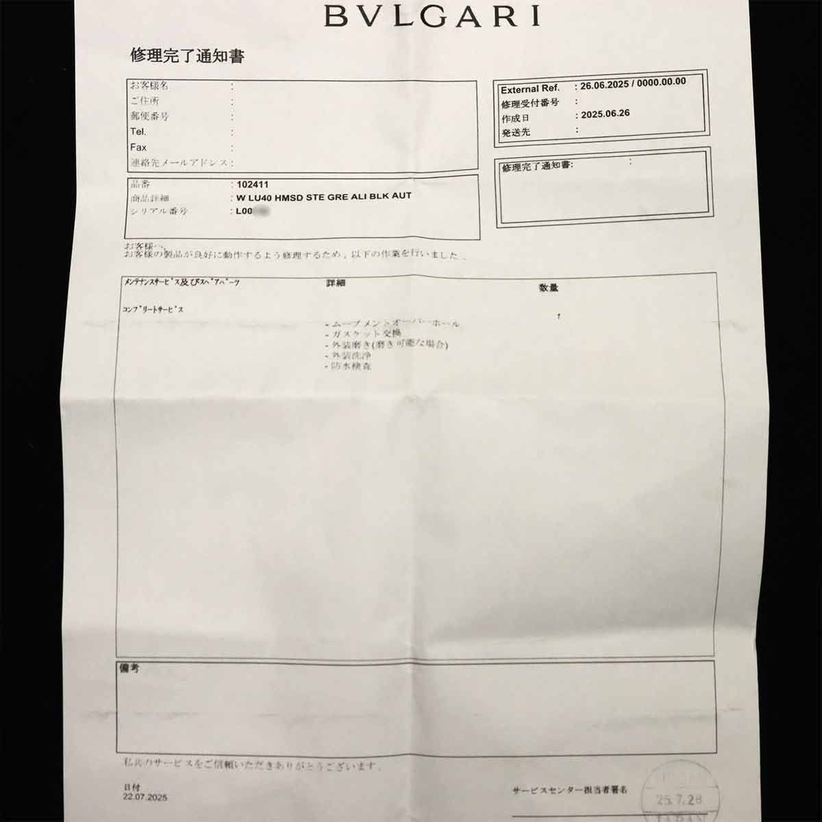 Condition: Excellent (very slight traces of use, full service Bvlgari 06/2025)
