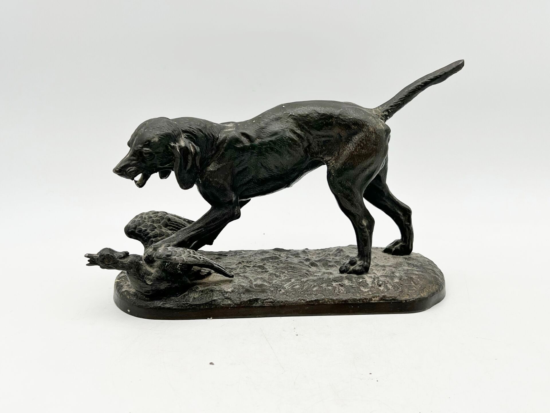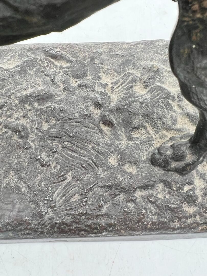 "Group in dark patina, tail restored, 19 x 30 x 13 cm