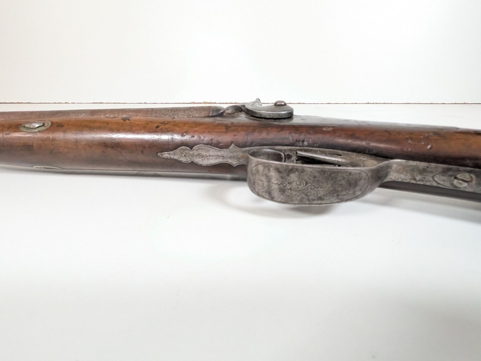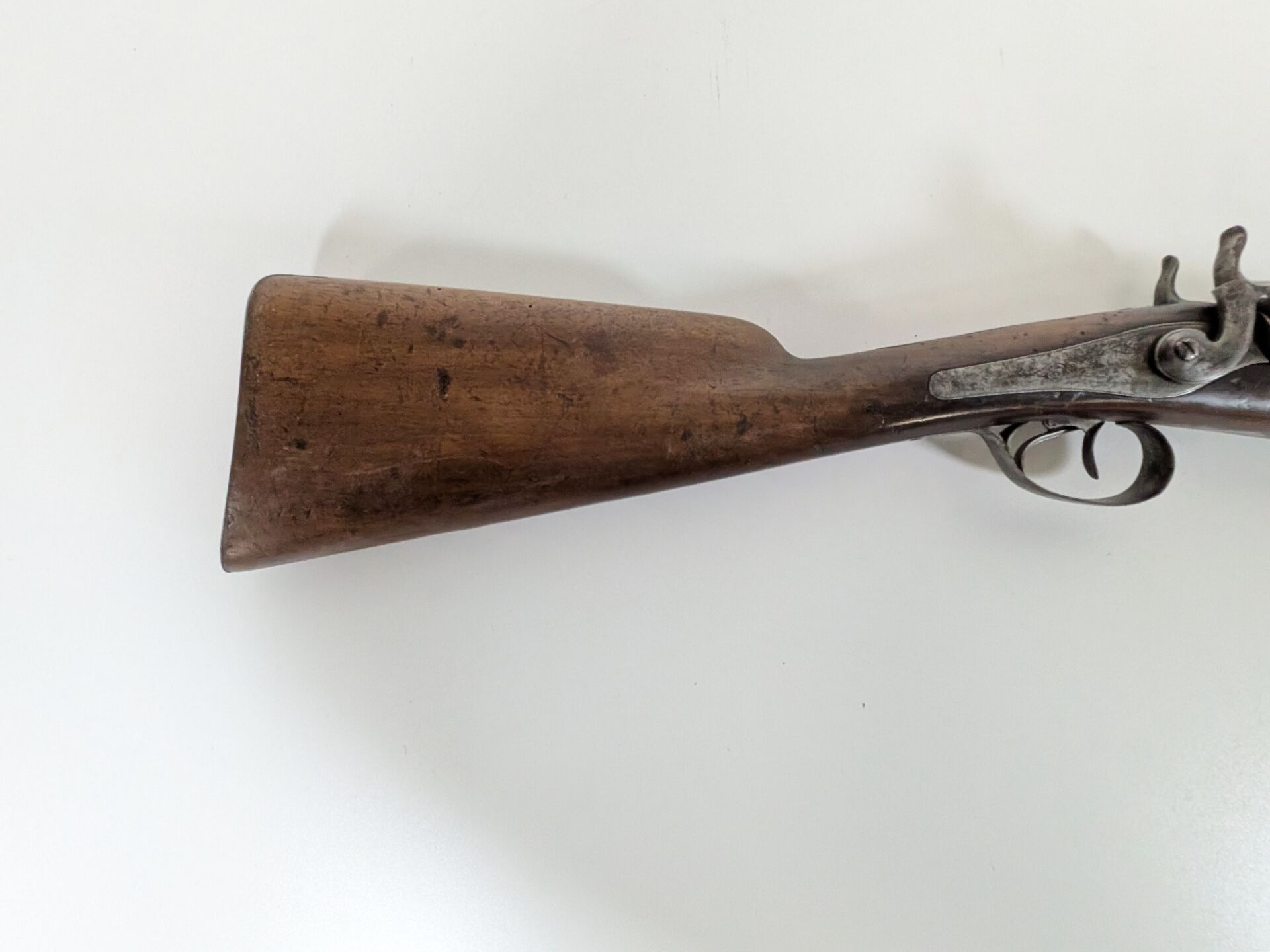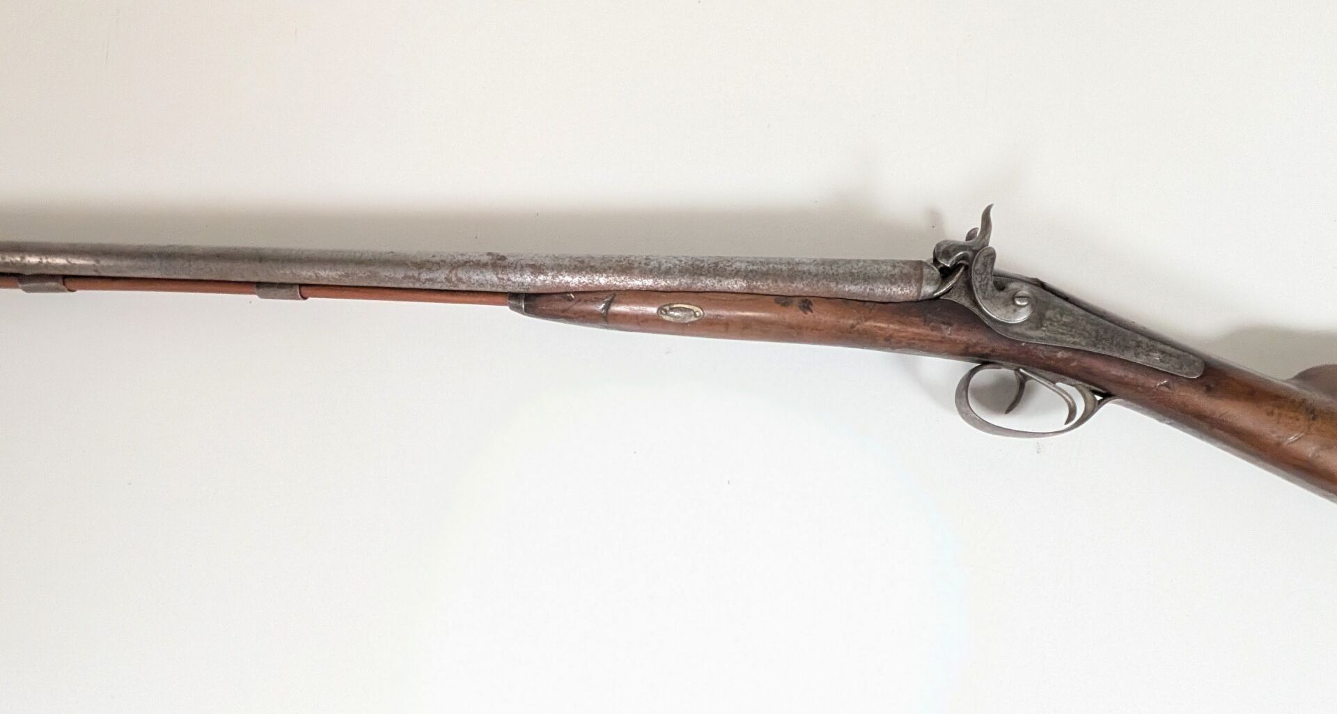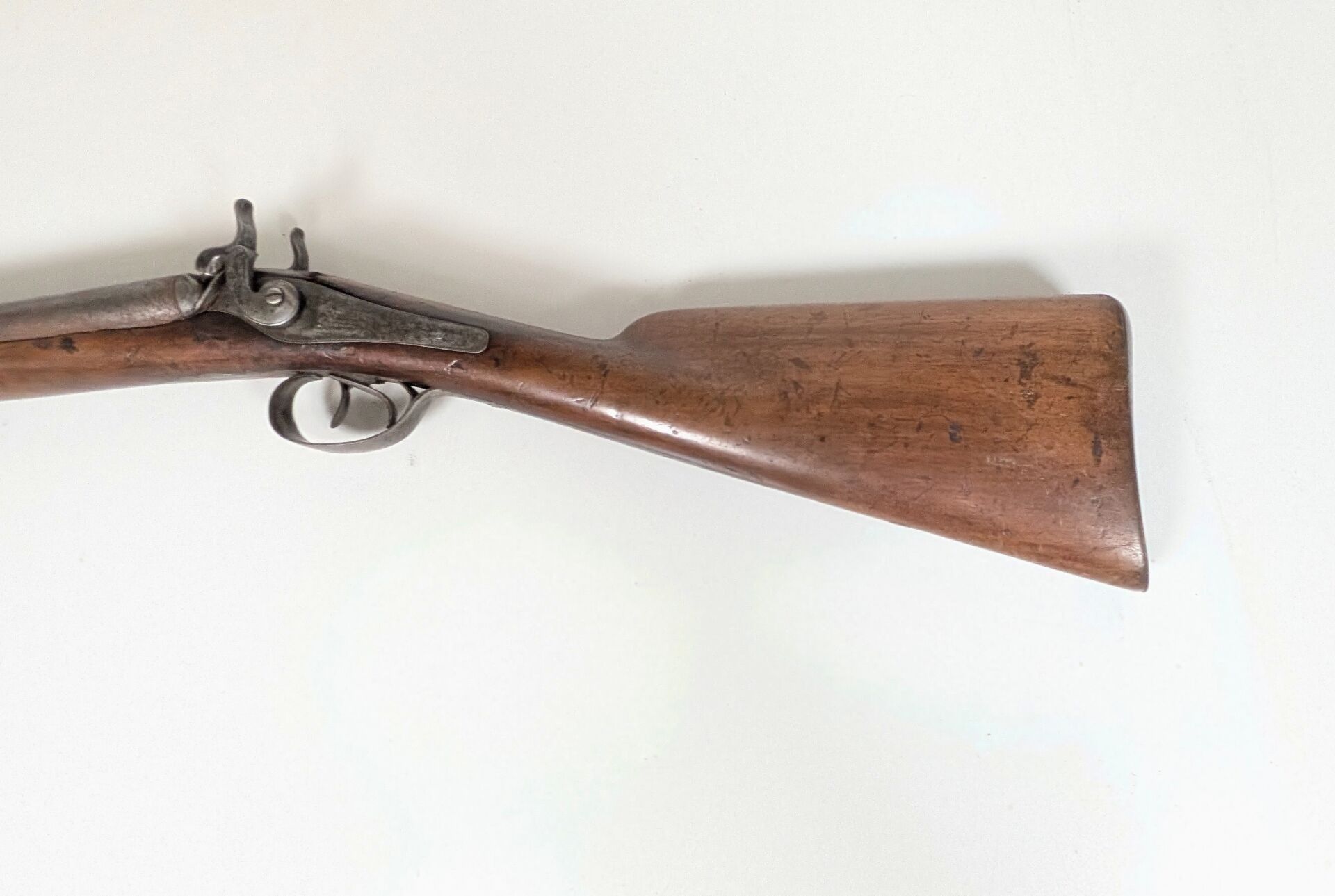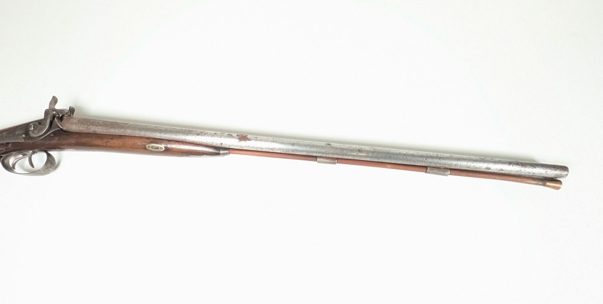 Shotgun with side-by-side barrels and piston, external hammers, L. 109 cm
