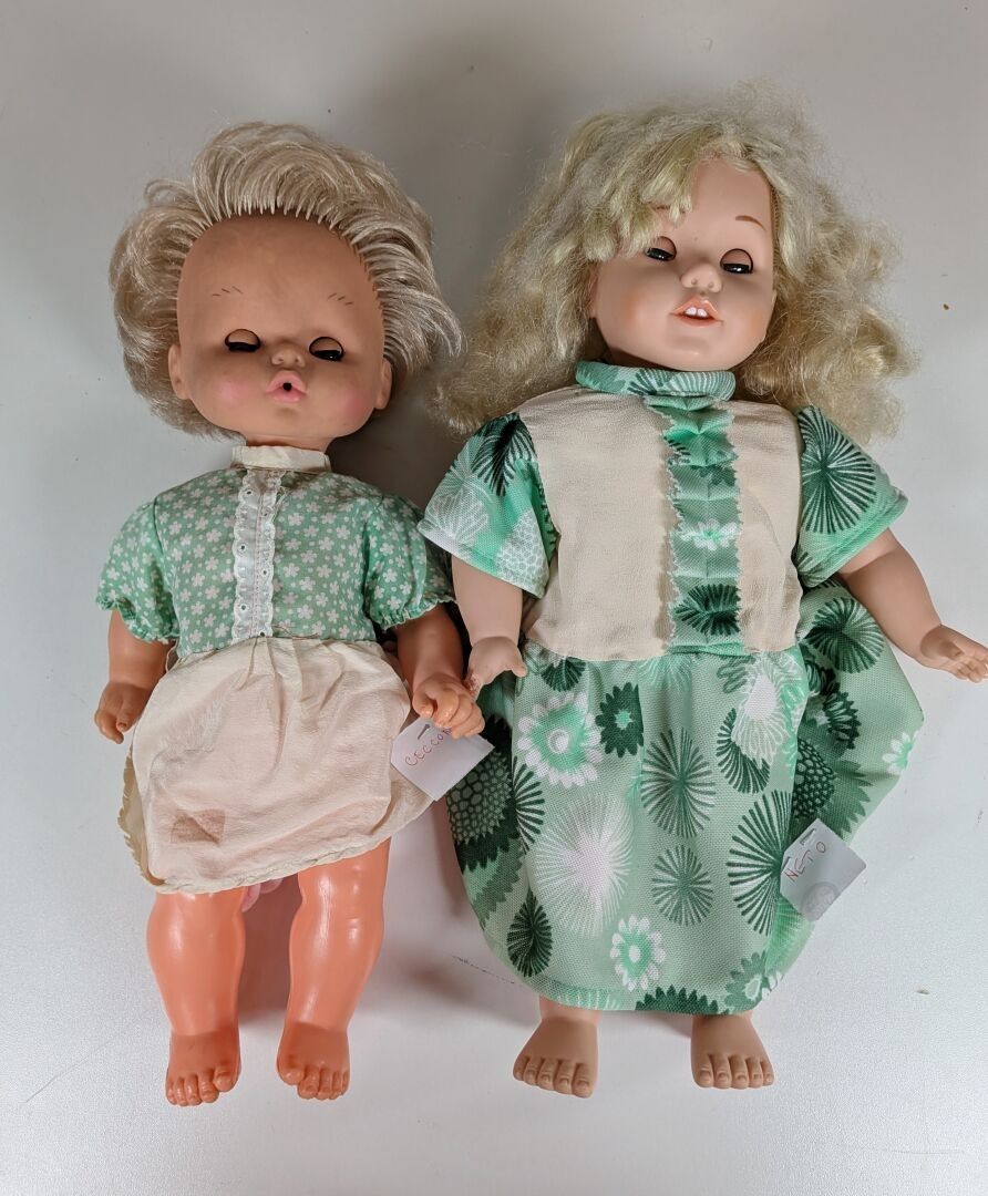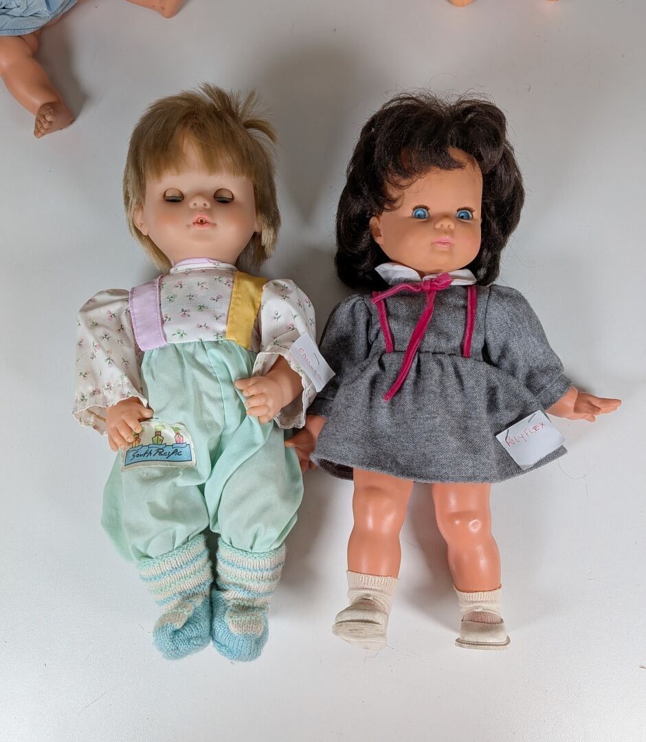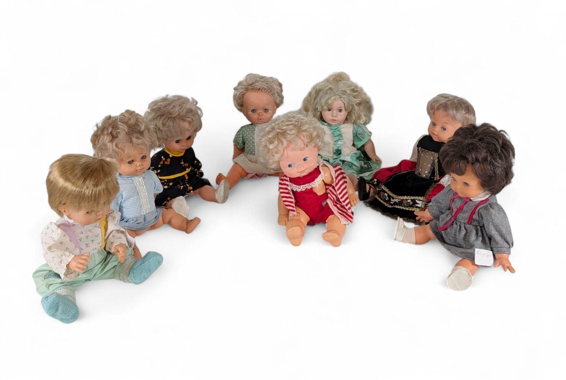 Box of 8 celluloid dolls, including BELLA, NETO, FAMOSA, CECCON, average height 35 cm, used condition