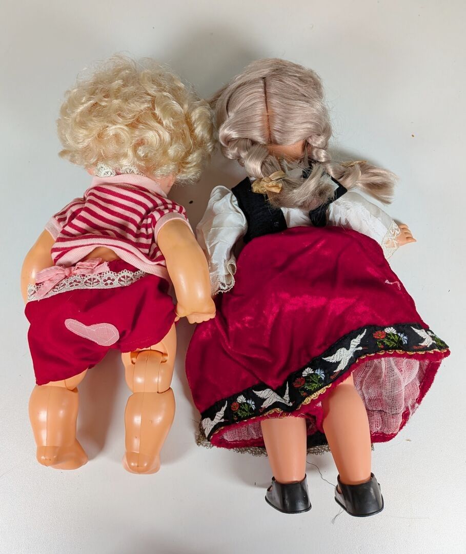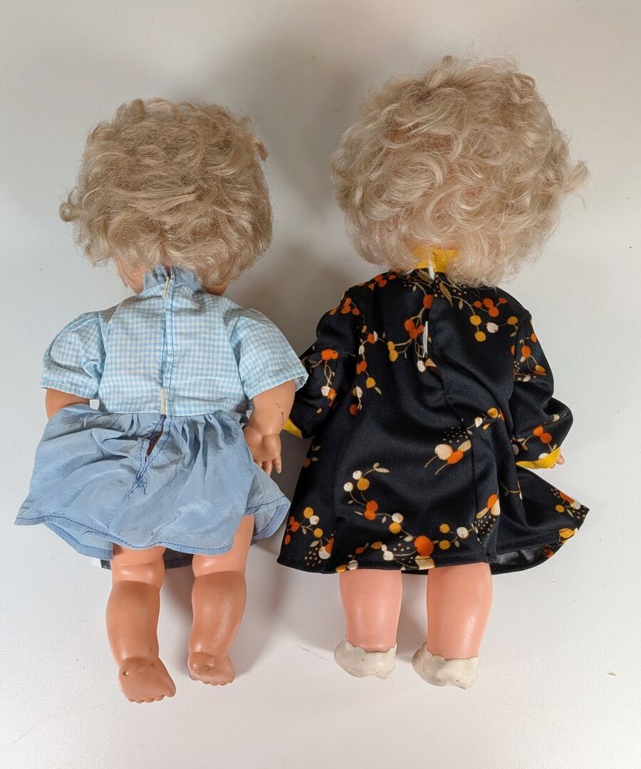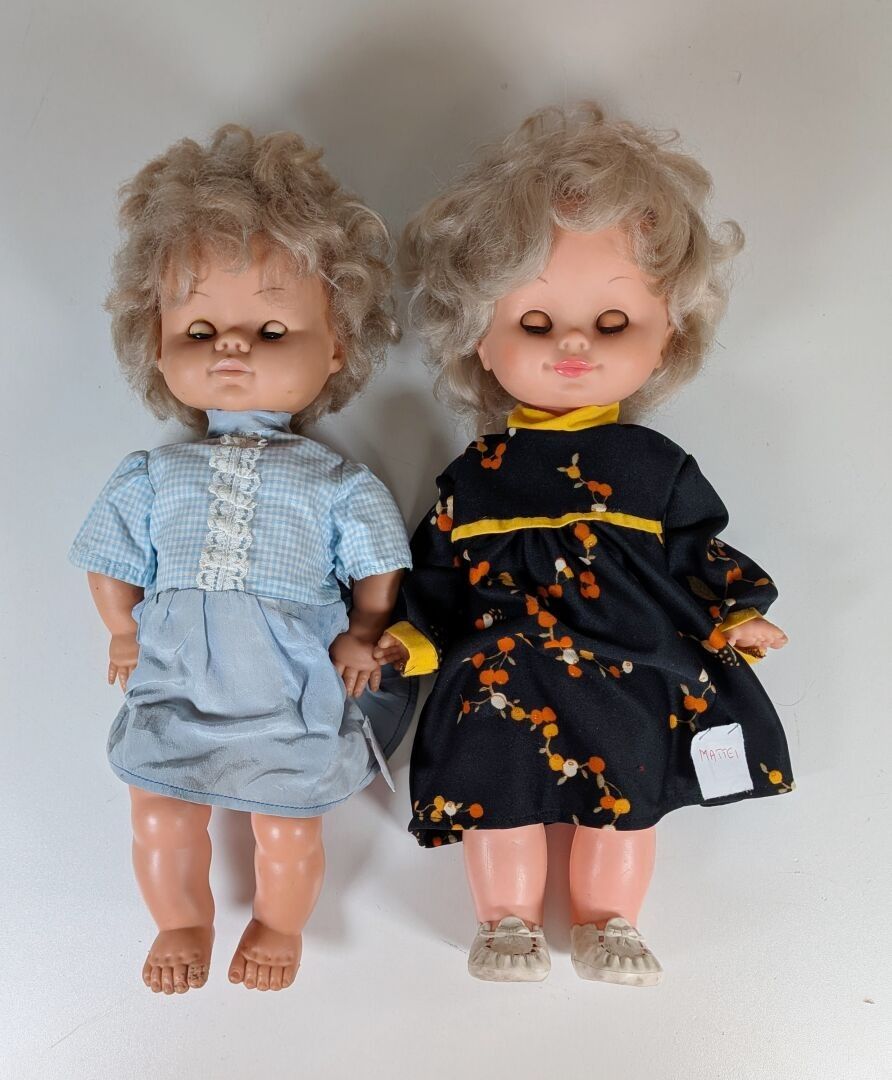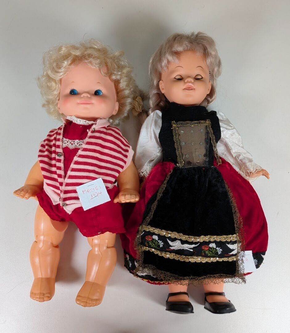 Box of 8 celluloid dolls, including BELLA, NETO, FAMOSA, CECCON, average height 35 cm, used condition