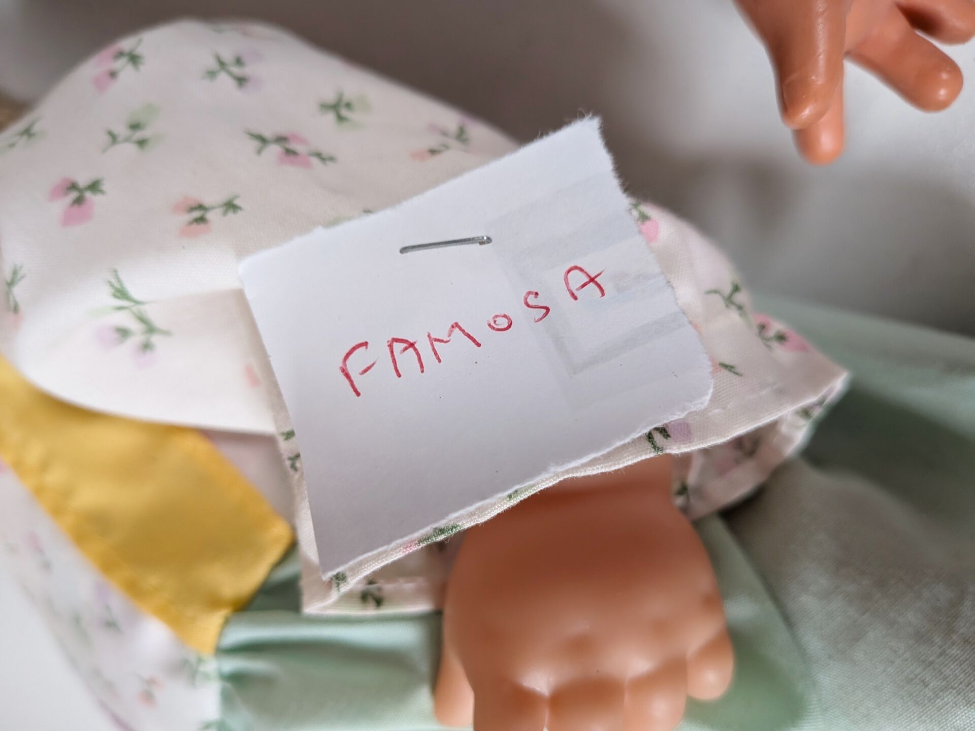 Box of 8 celluloid dolls, including BELLA, NETO, FAMOSA, CEC…