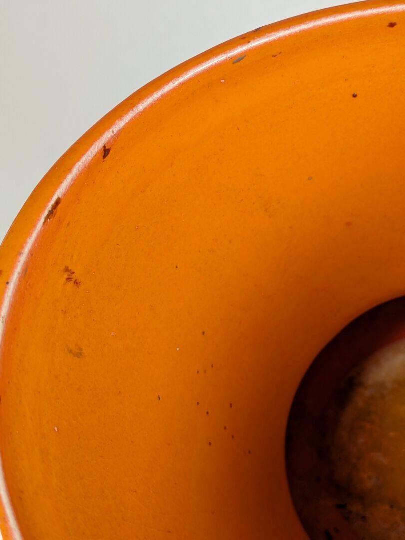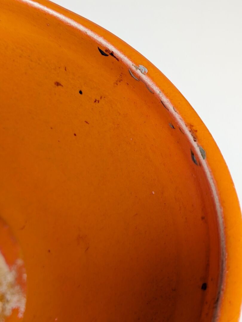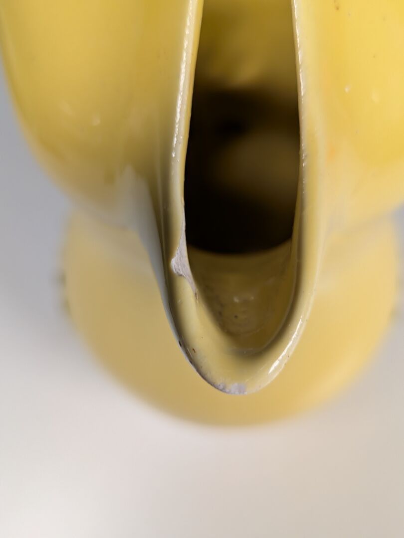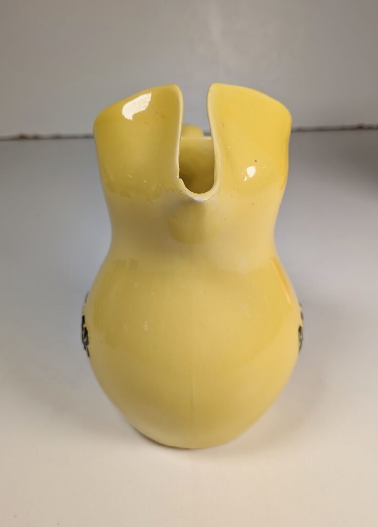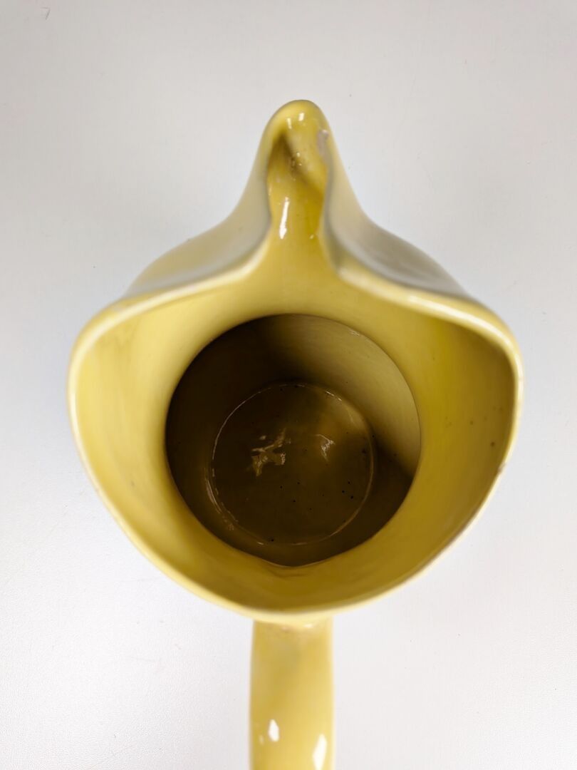 ADVERTISING. 3 pieces: Brown and brown Maure CASANIS pitcher (marked C87 on reverse, H. 15 cm), yellow earthenware BERGER pitcher (H. 19 cm, chipped), and orange ceramic ISABEY pot (H. 16 cm).