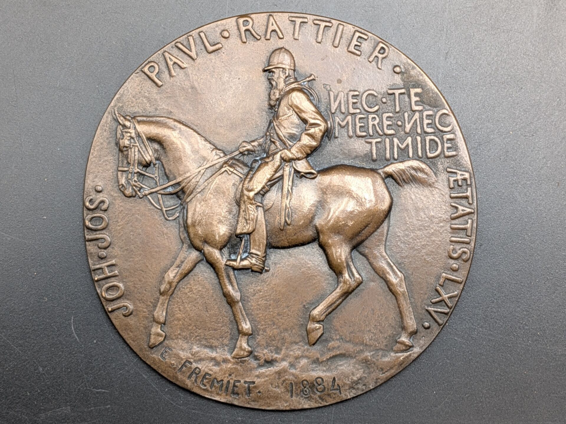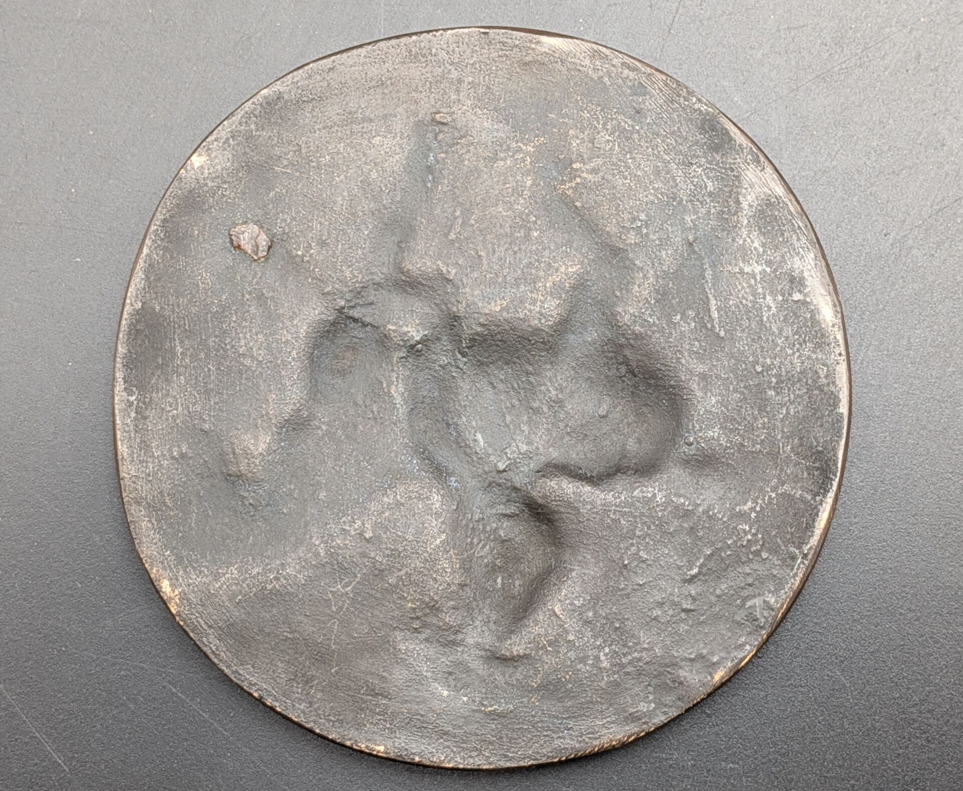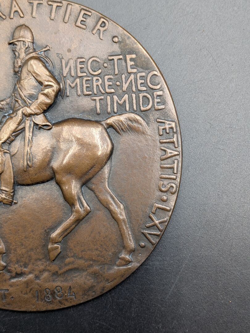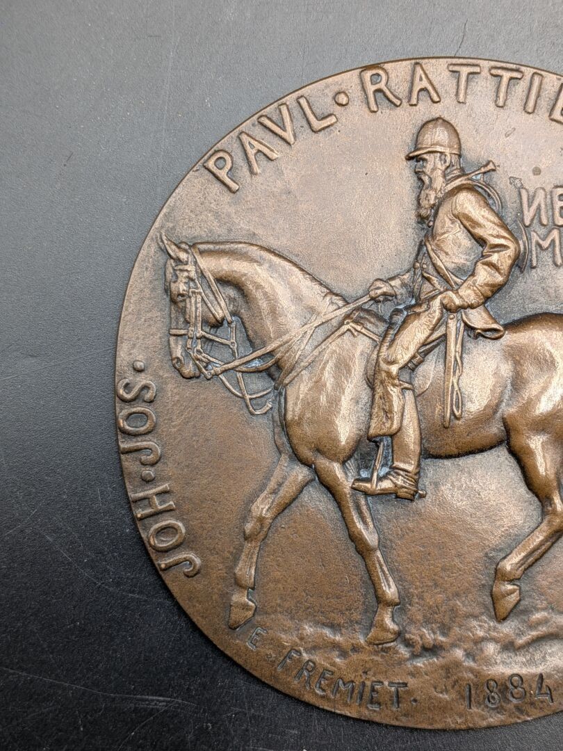 FREMIET Emmanuel (1824 - 1910) "Chasseur à cheval" Bronze medallion with bas-relief decoration, signed and dated 1884, D. 9.5 cm