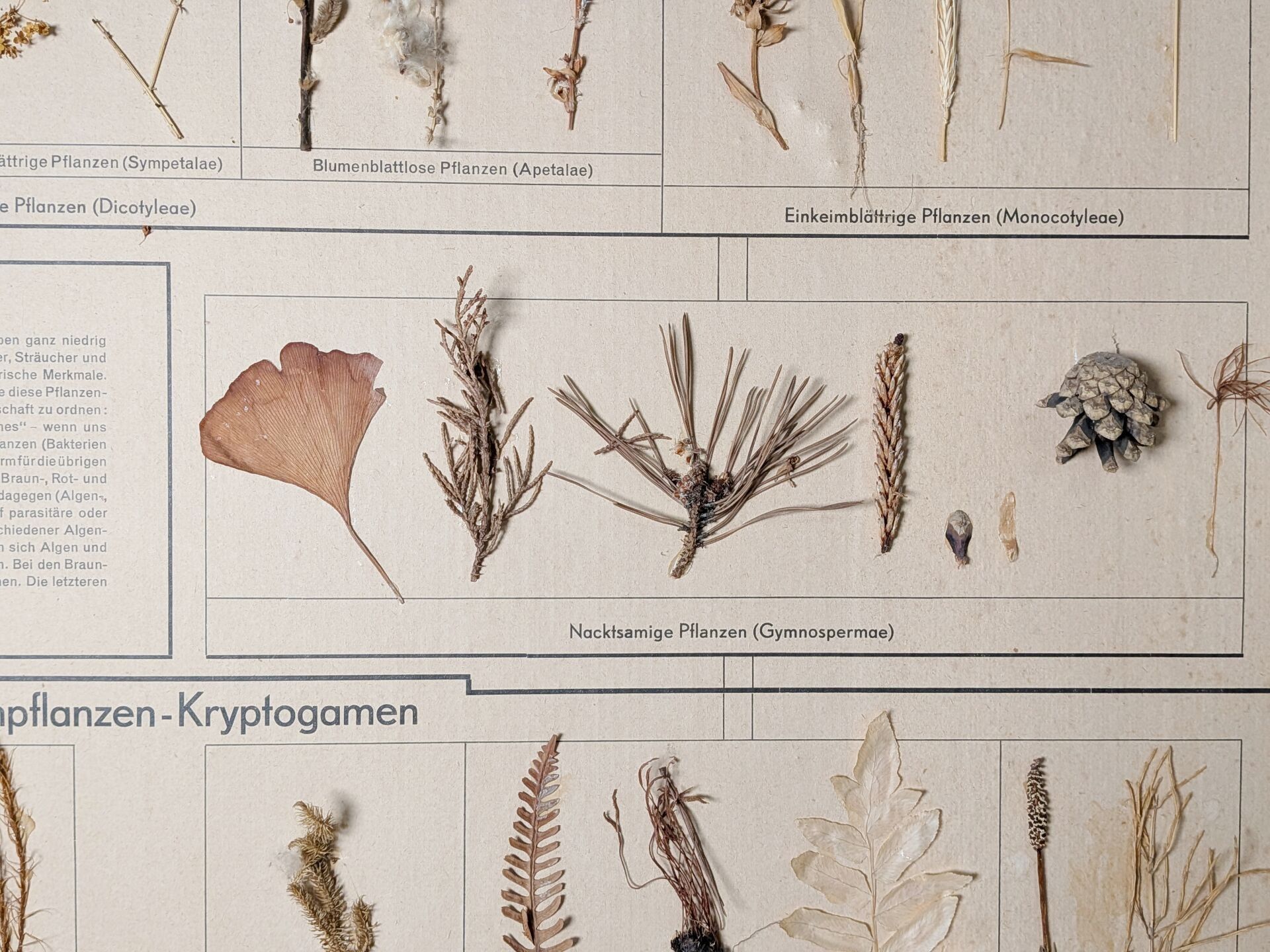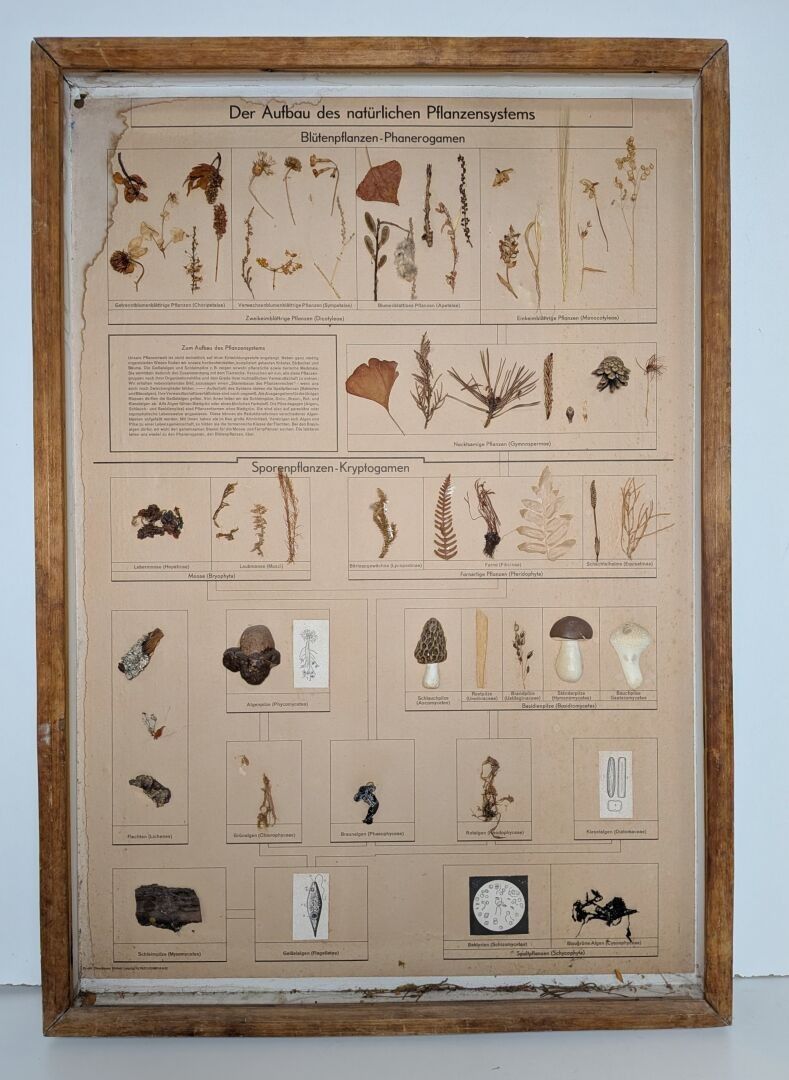Large herbarium plate "Der Aufbau des Natürlichen Planzensystems", Druckhaus Einbeit Leipzig 4/9/52, wet, 85 x 59 cm, mounted in a wooden frame