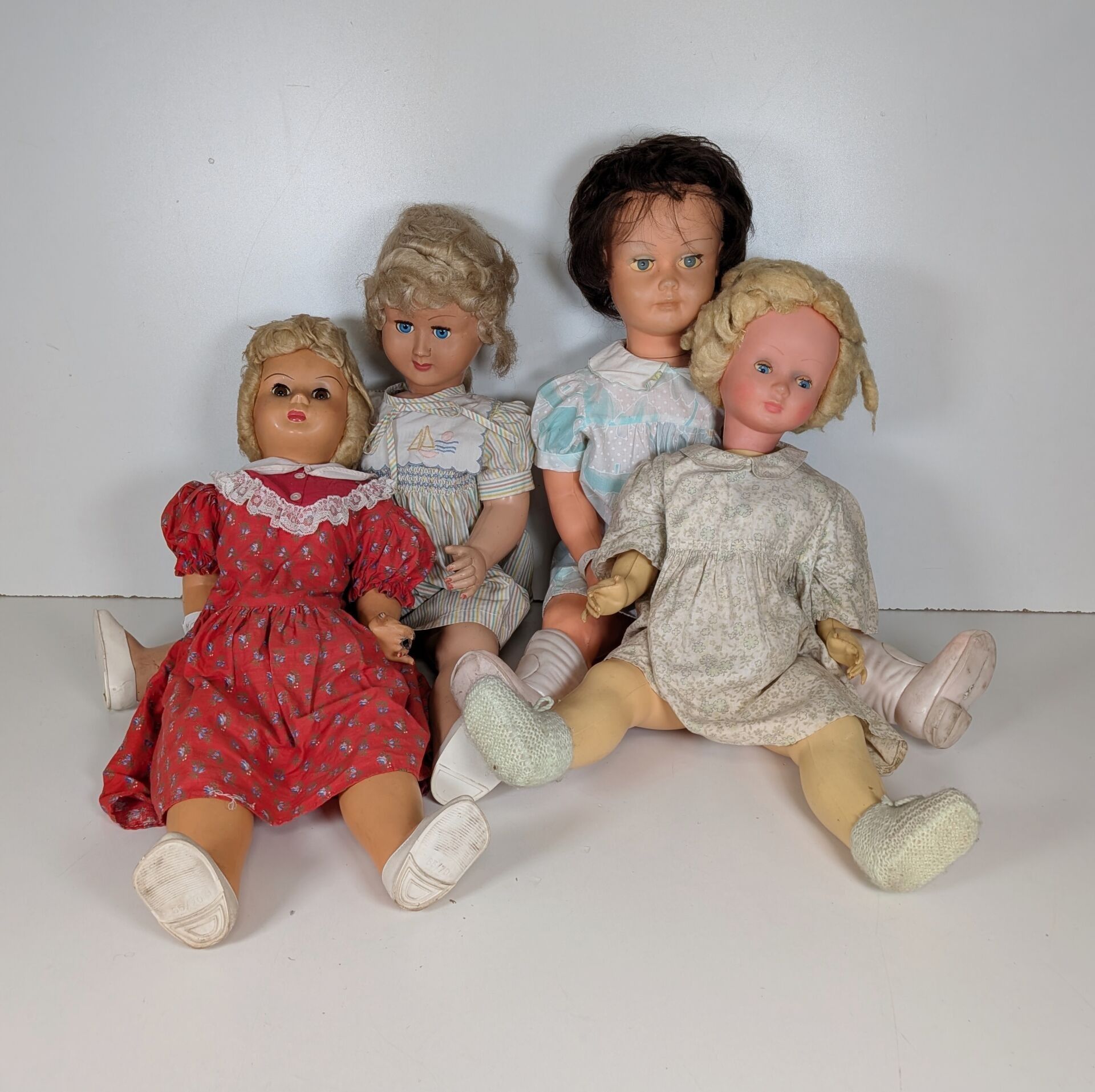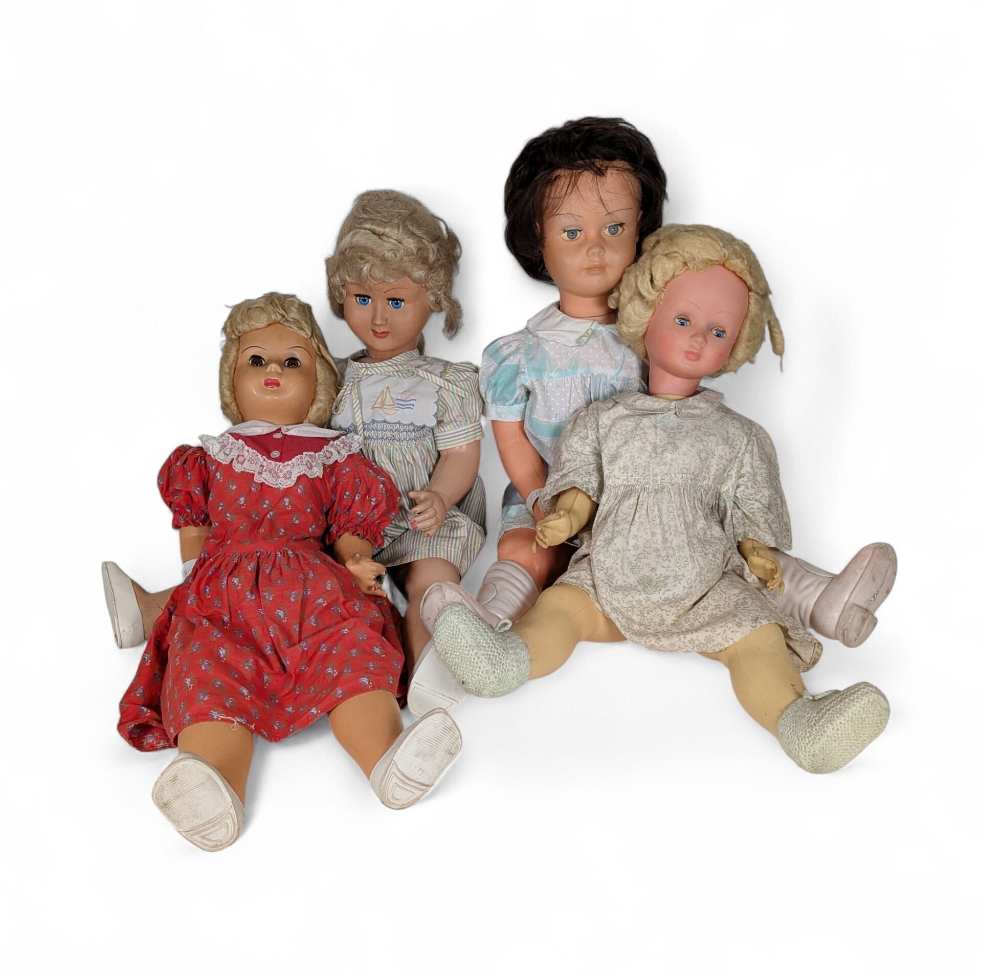 Set of 4 very large "giant" dolls, including BELLA, approx. 65 to 80 cm high, used condition