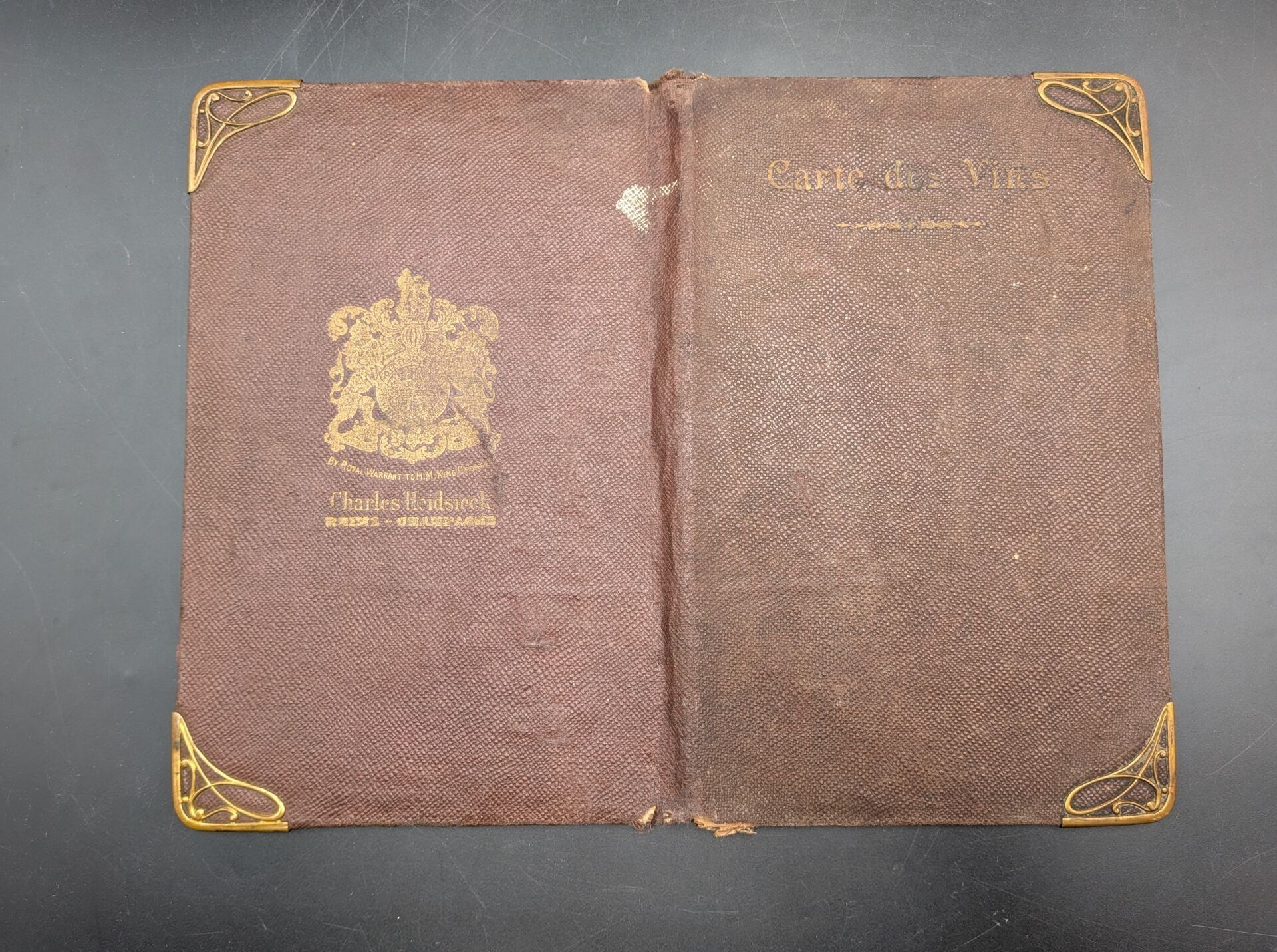 Leather-wrapped wine list CHAMPAGNE Charles HEIDSIECK REIMS …