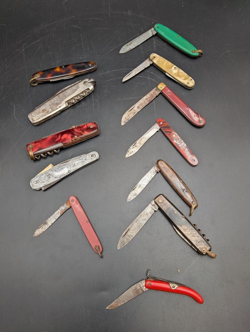 Set of 12 knives and penknives, in used condition, minor accidents