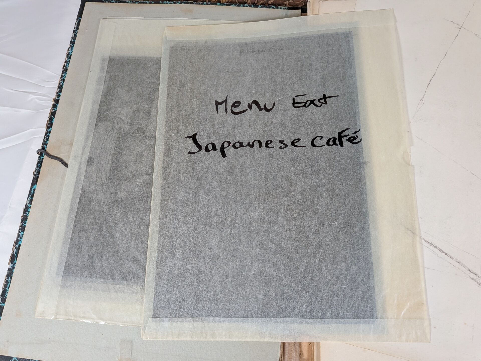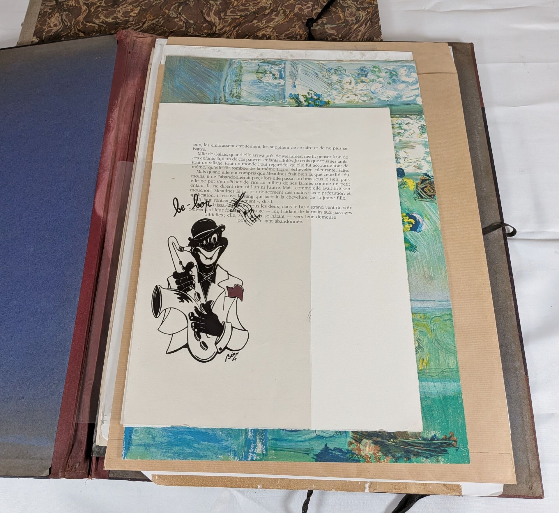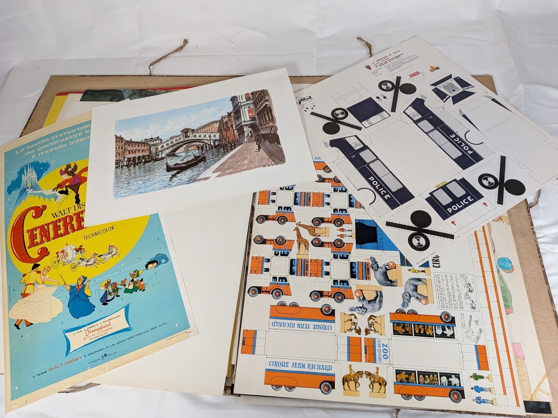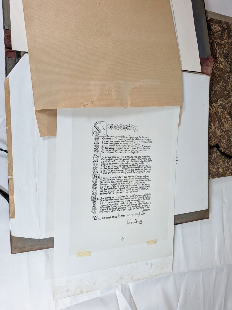 Set of 3 drawing boxes, containing a collection of charcoal drawings, engravings and miscellaneous items.