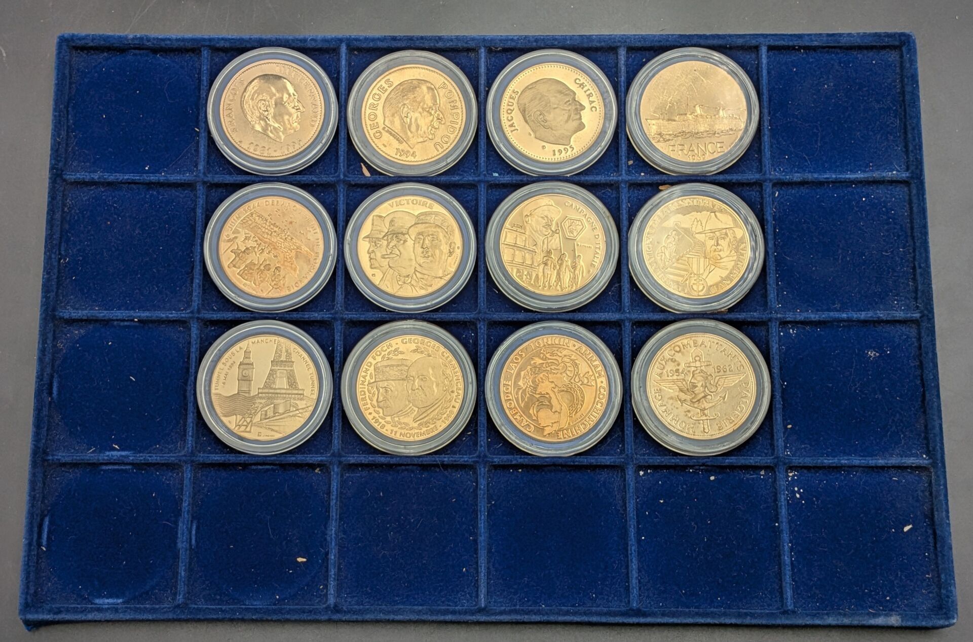 Set of 12 Heritage Treasure medals. The Presidents of the Republic, series 1939-1945 and miscellaneous. In capsules