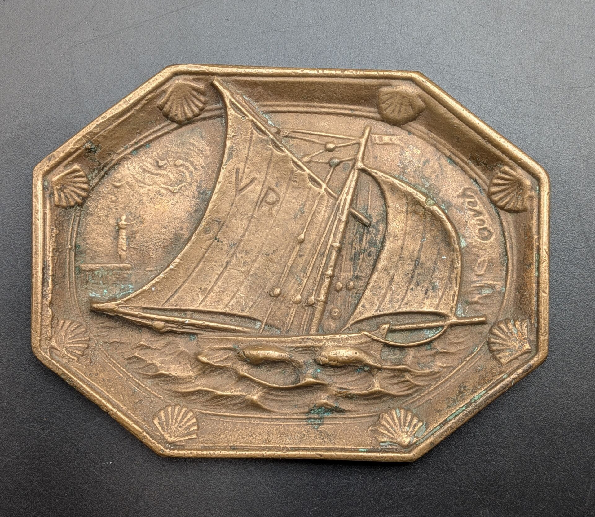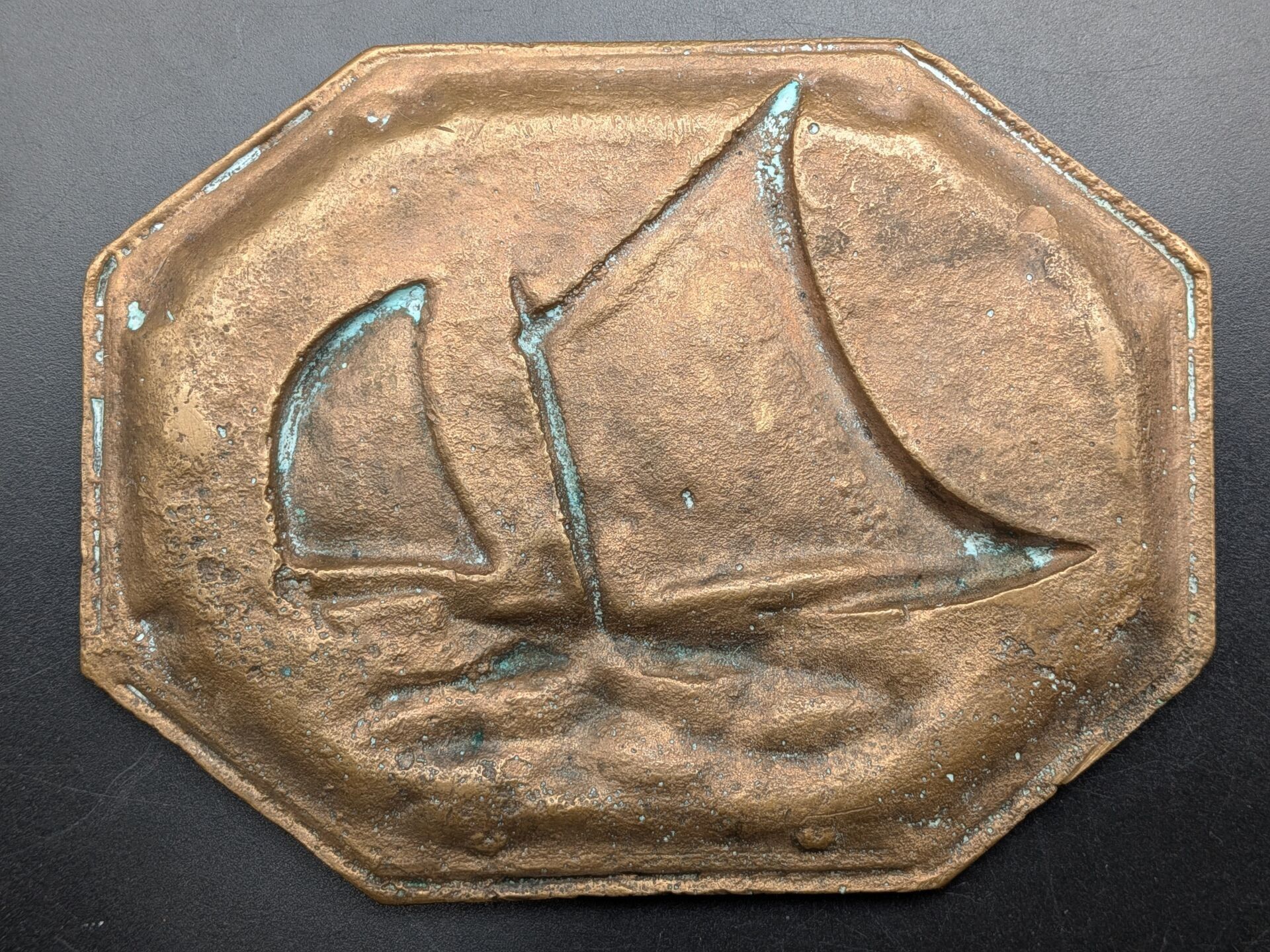 Set of 5 paper trays: one in bronze with a sailboat design (…