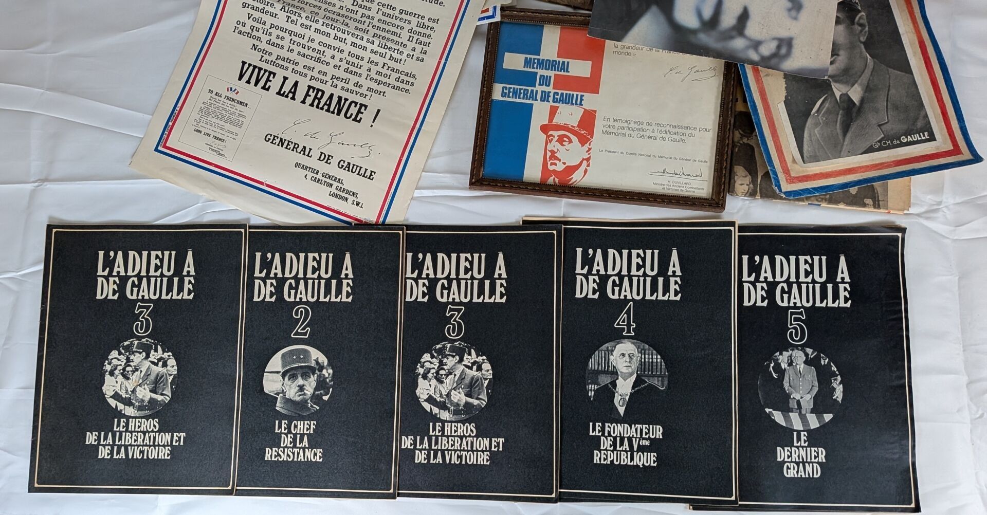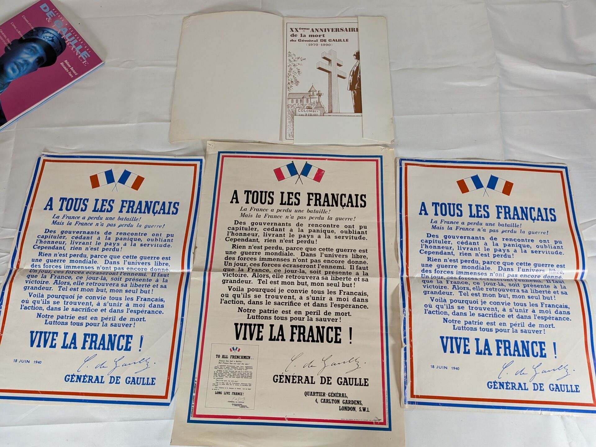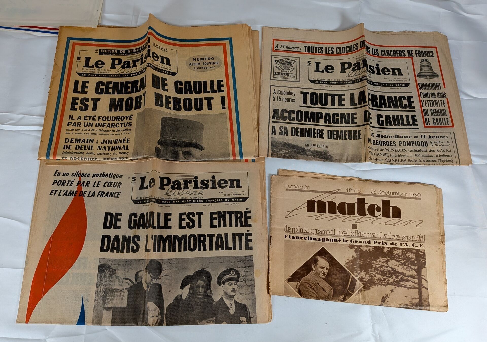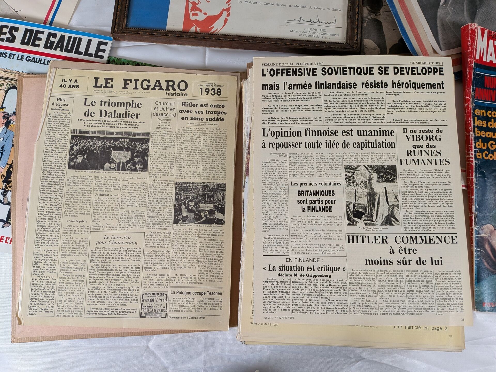 Set of works on the theme of General De Gaulle, including period magazines and newspapers. All in used condition.