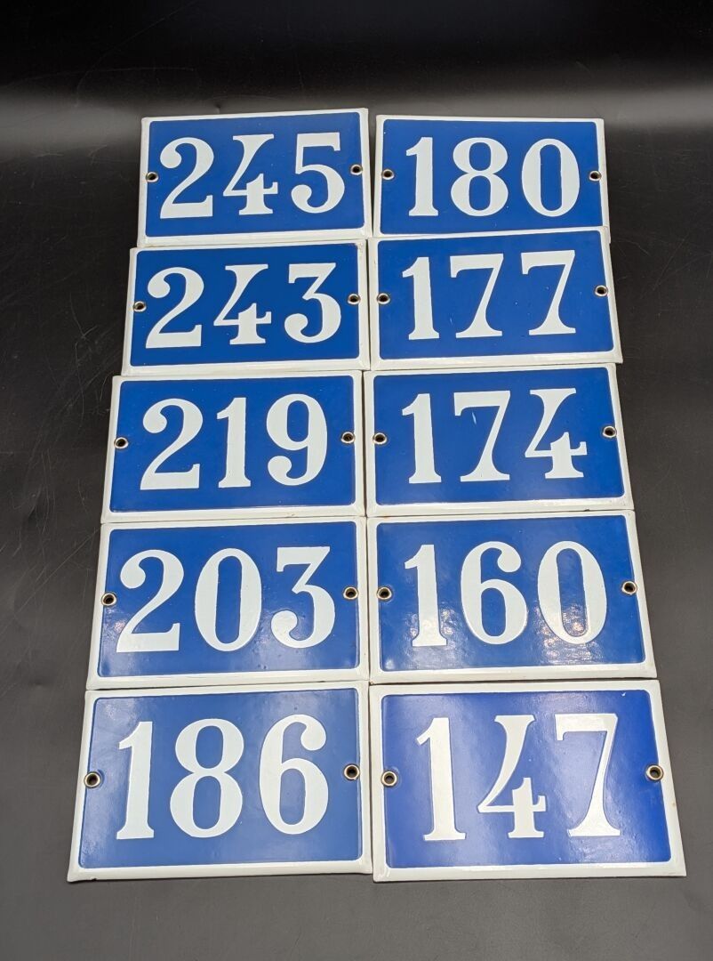 Batch 10 enamelled street / house plaques : 147,160,174,177,180,186,203,219,243,245 - 10 cm x 15 cm