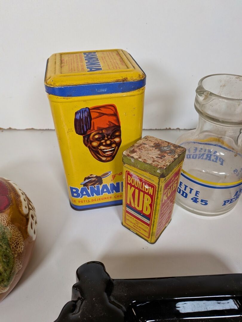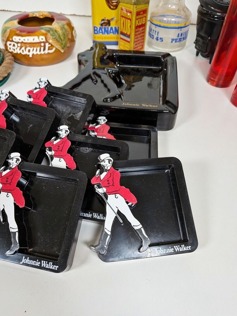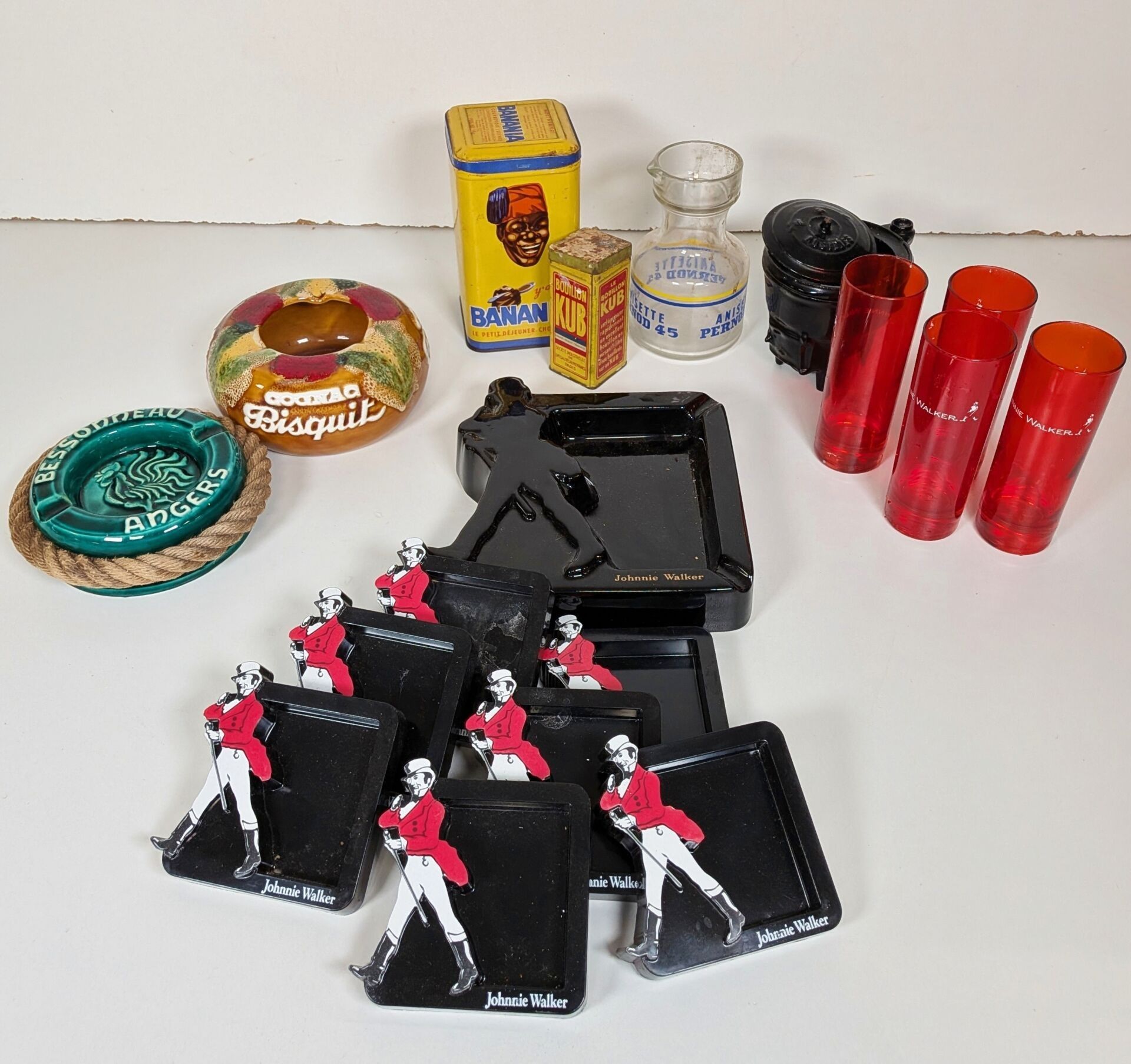 ADVERTISING / COFFEE. Set of advertising ashtrays (including Johnnie Walker), used Banania box, Anisette Pernod carafe and miscellaneous (one box).