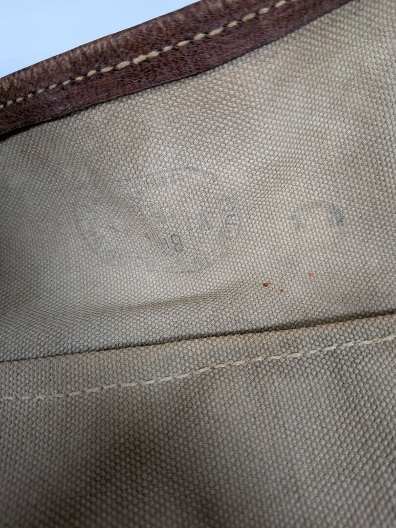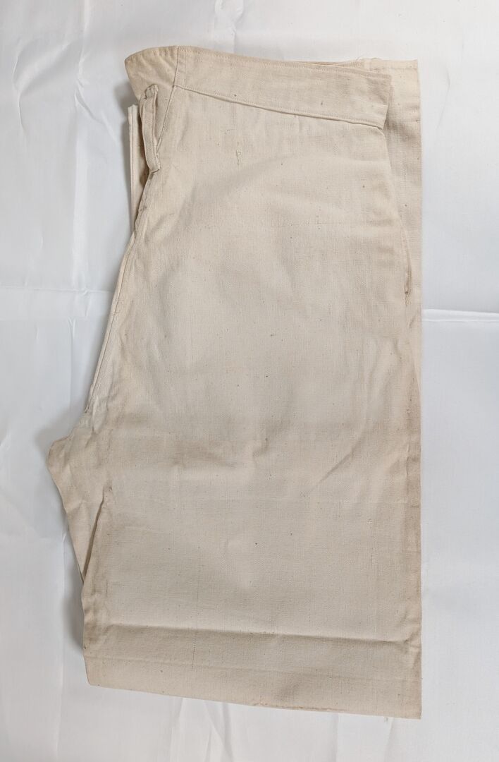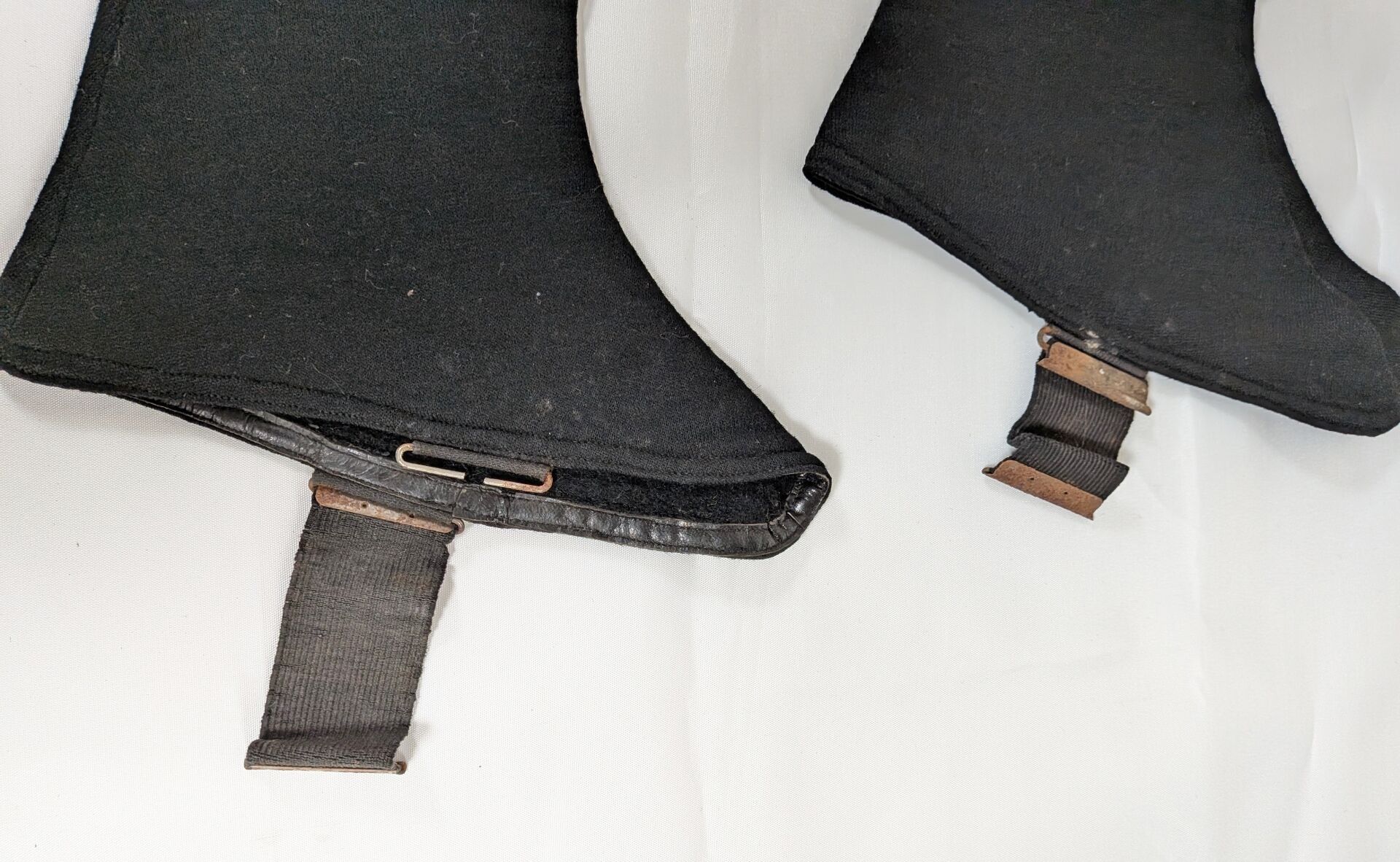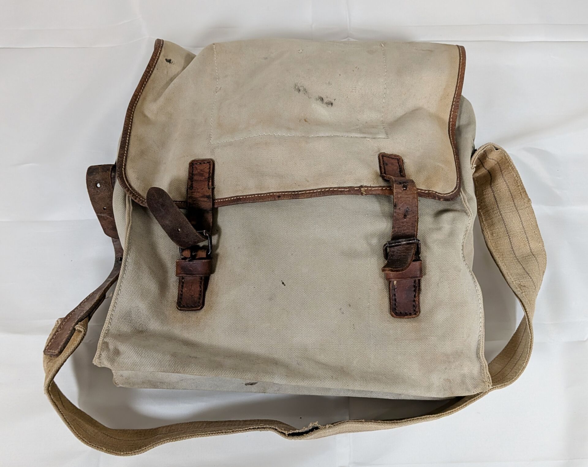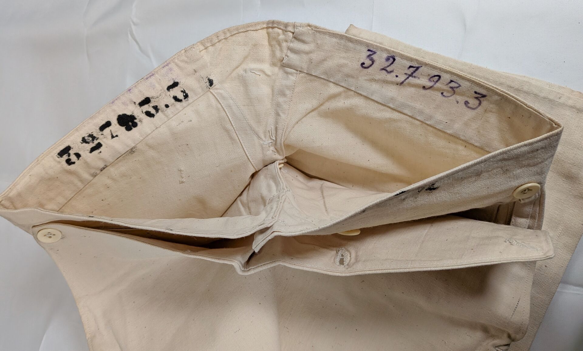 MILITARIA. Africa, 62nd regiment of the line. Lot comprising a pair of canvas trousers dated 1920, a besace bag with buttons marked military equipment (40 x 33 cm), a small bag with buttons marked military equipment and stamped 62nd regiment of the line (37 x 25 cm). One pair of black Edelweiss gaiters is attached.