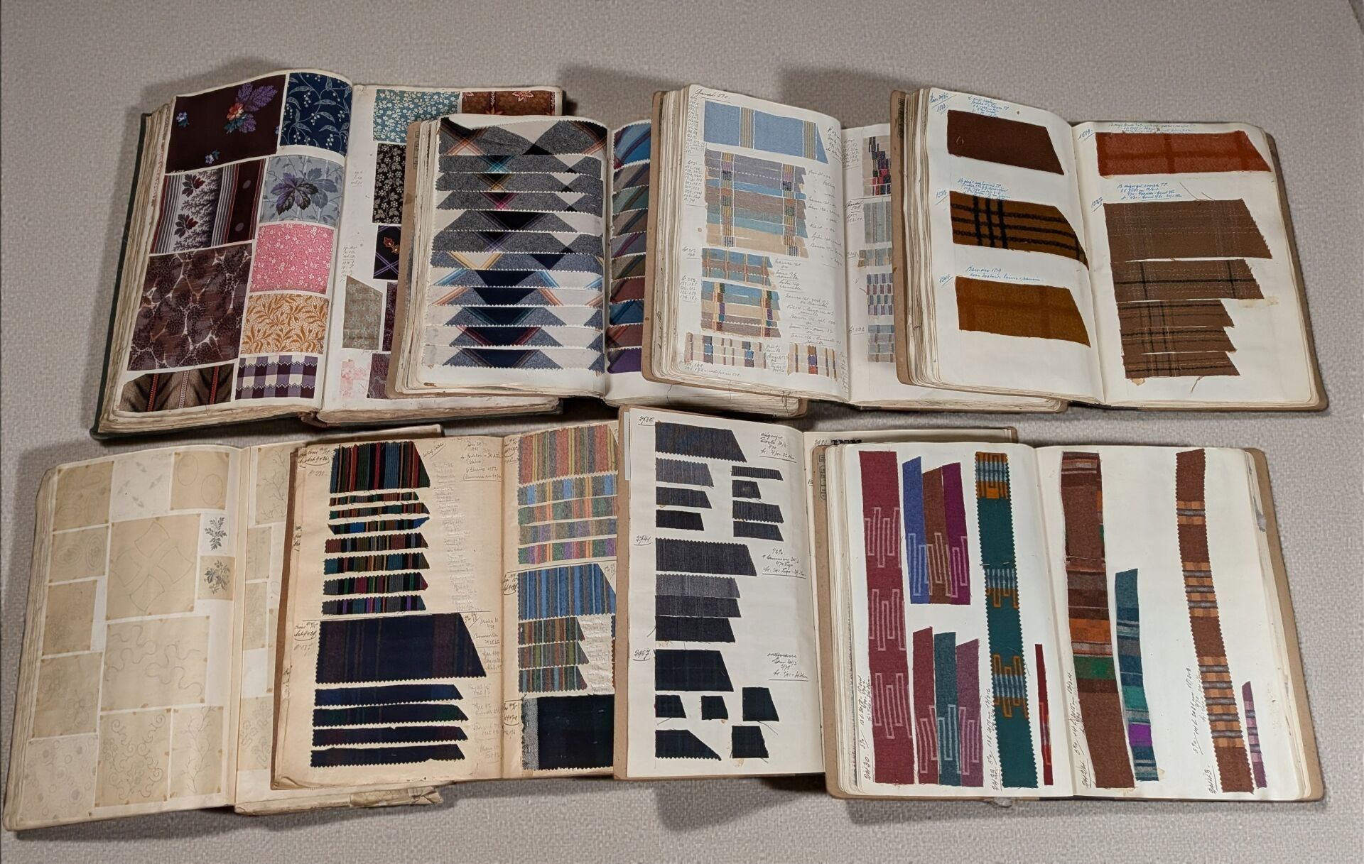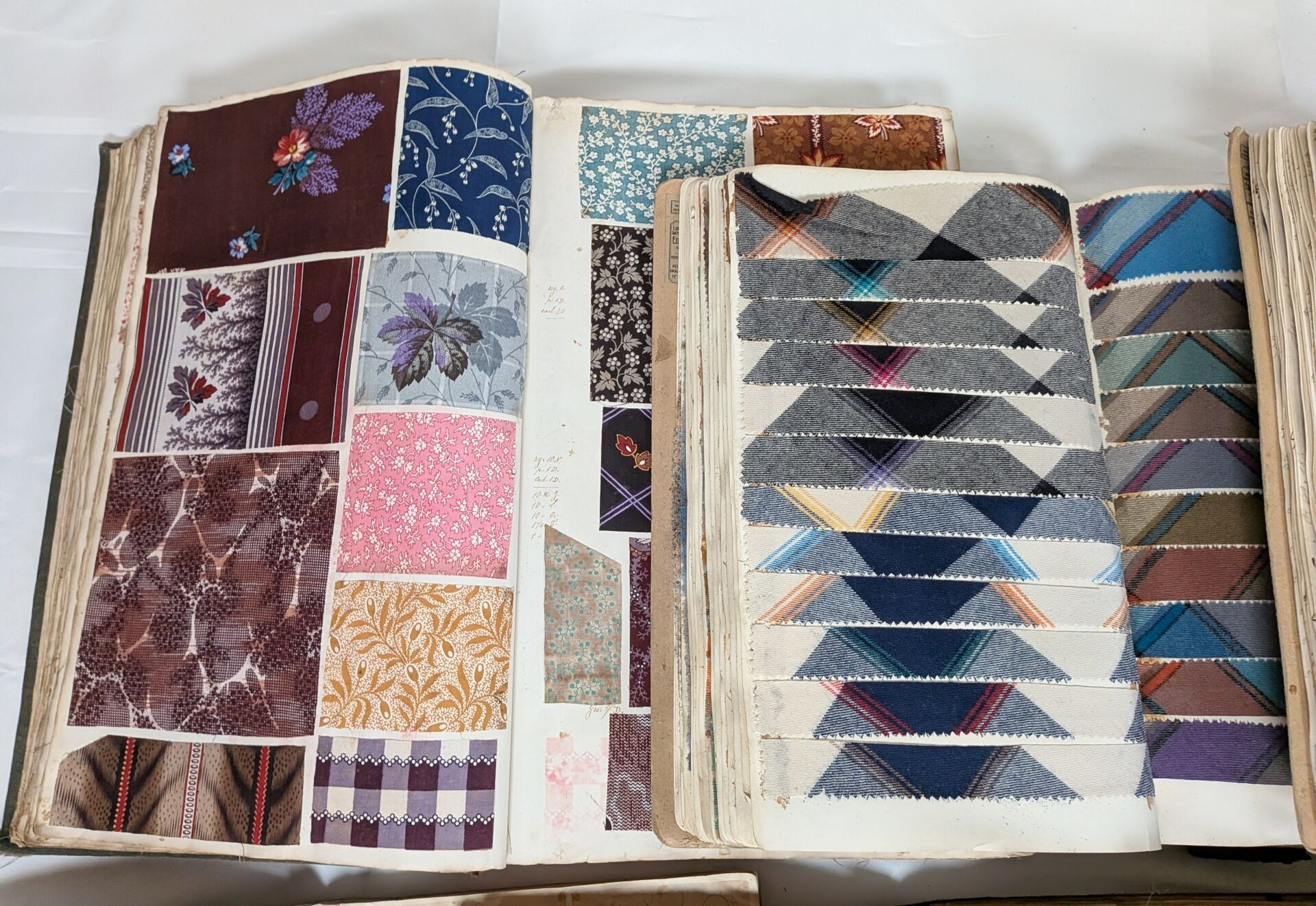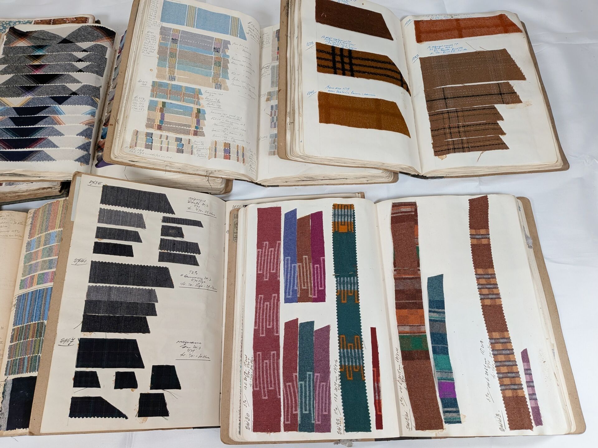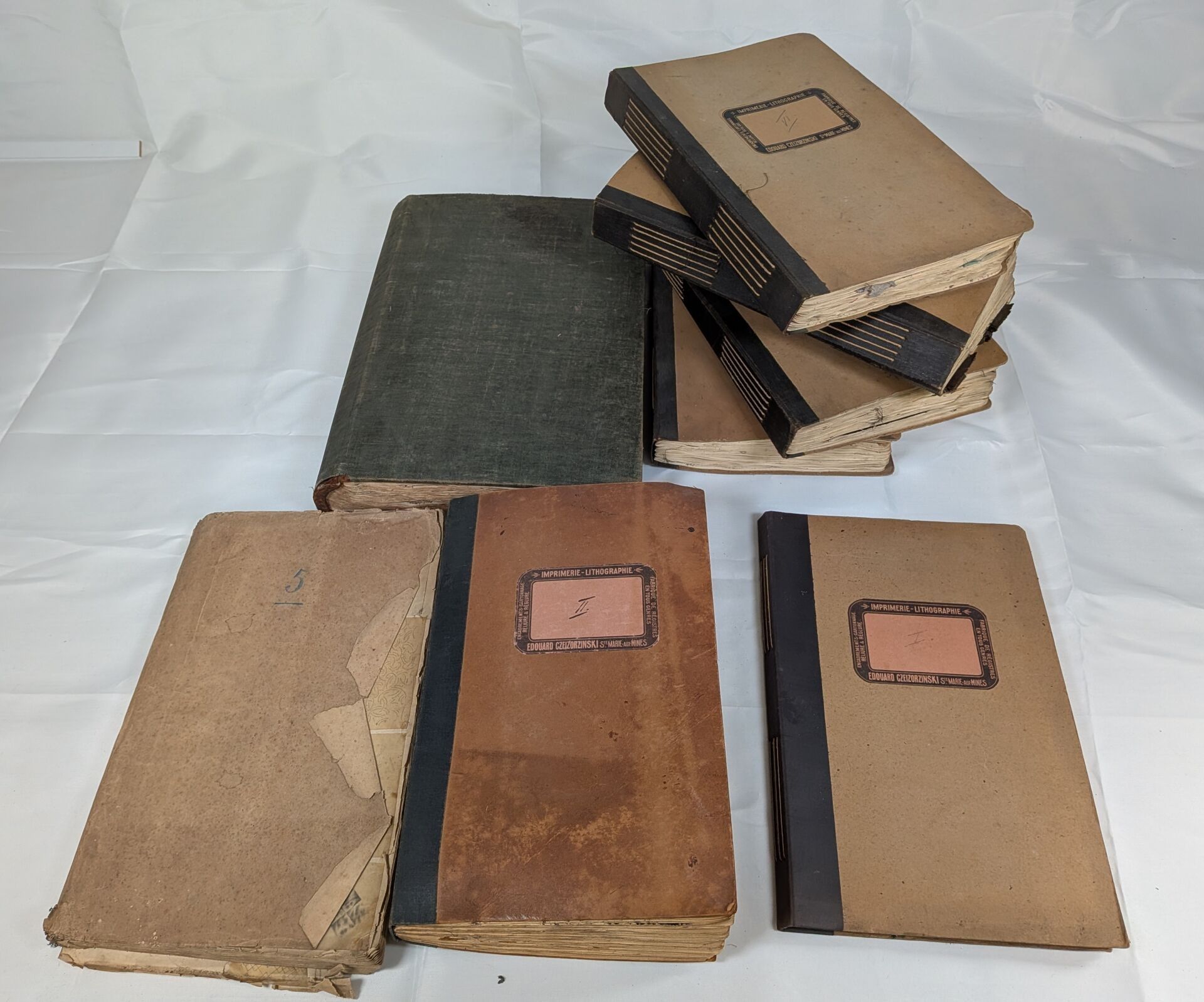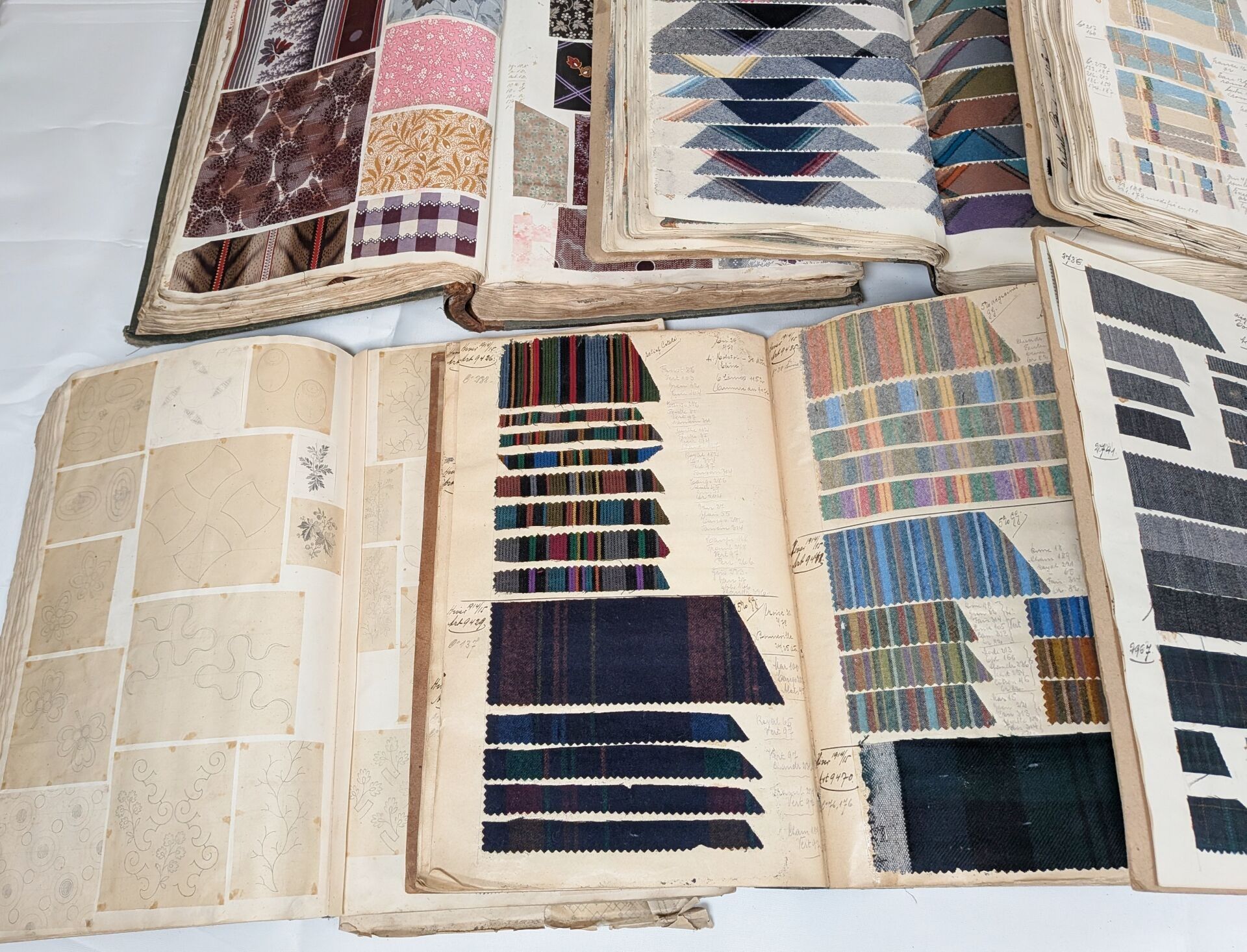 Edouard CZEIZORZINSKI or CZECZORZINSKI (Edouard CZEIZORZINSKI was born of Polish parents in Sainte Marie aux Mines (Alsace). Stationer, bookseller and bookbinder°. Lot consisting of 6 albums of samples with labels of origin and references, 1 incomplete album without reference, 1 album of tracings representing the decorations of various fabrics (some annotated). Sold as is