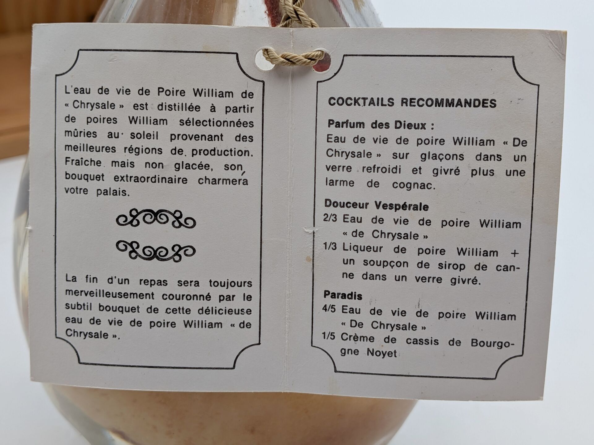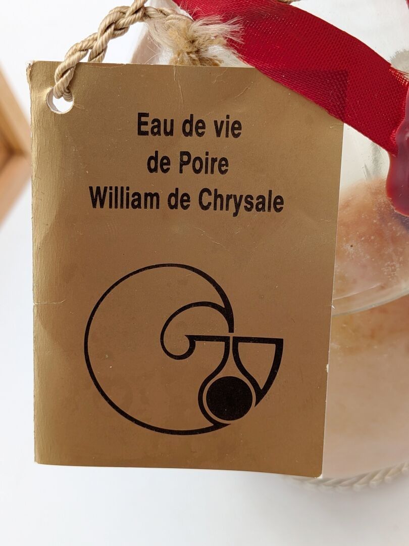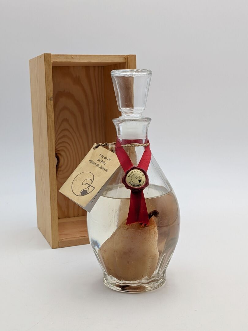 One William de Chrysale pear eau de vie is included (in wooden box, low level).