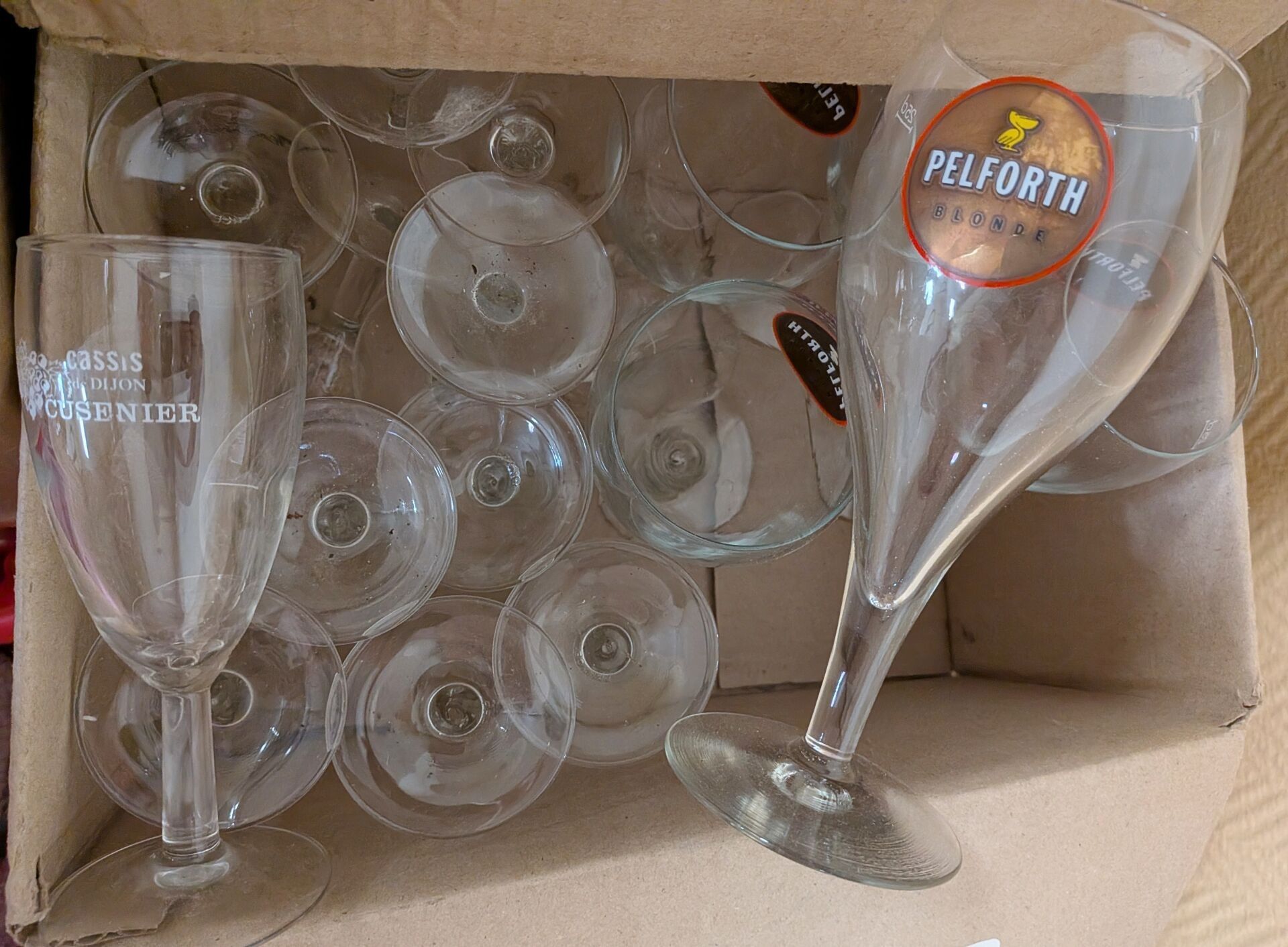 BISTRO / CAFE. Large lot of approximately 380 glasses, mostly advertising, including PASTIS 51, RICARD, STELLA ARTOIS, CASSIS DE DIJON CUSENIER, L'HERITIER-GUYOT DIJON, SCOTCH WHISKY, BIERE DE NOEL, MONIN, LEFFE... A wide range