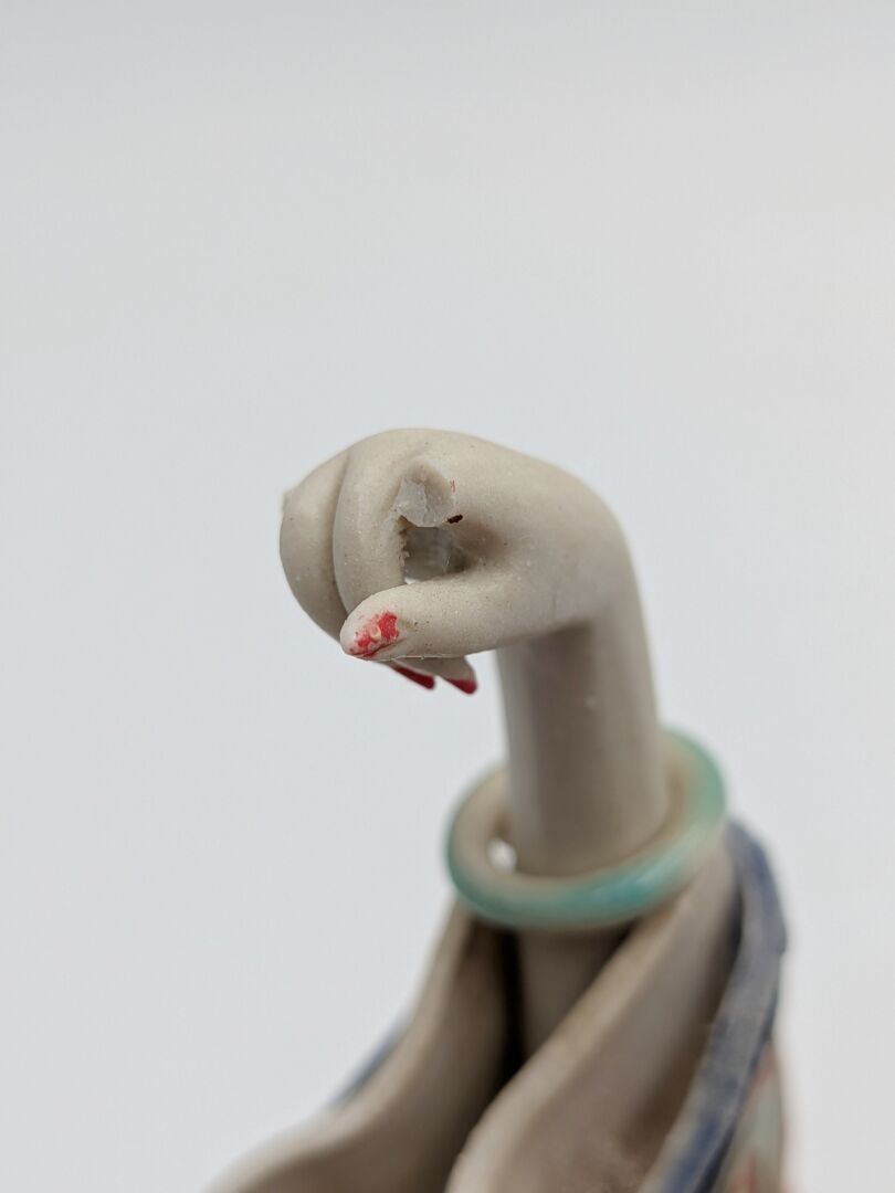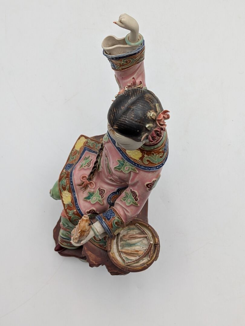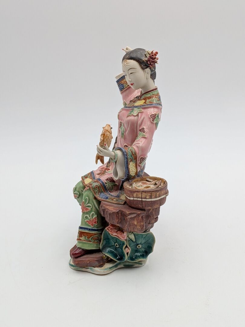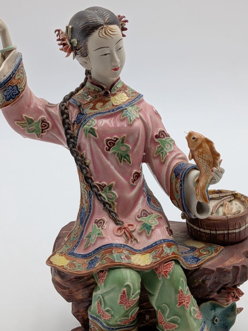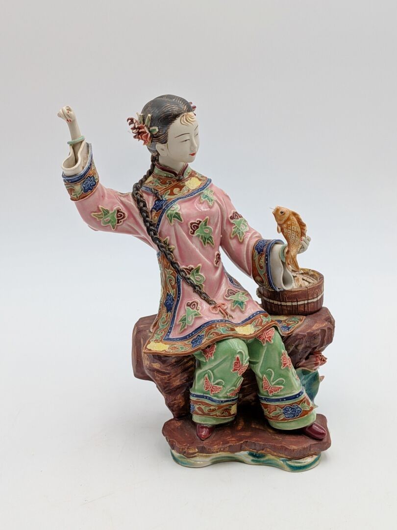 CHINA. The fish merchant. Polychrome porcelain subject, accident to one hand and minor damage to fingers and hairstyle, H. 23 cm