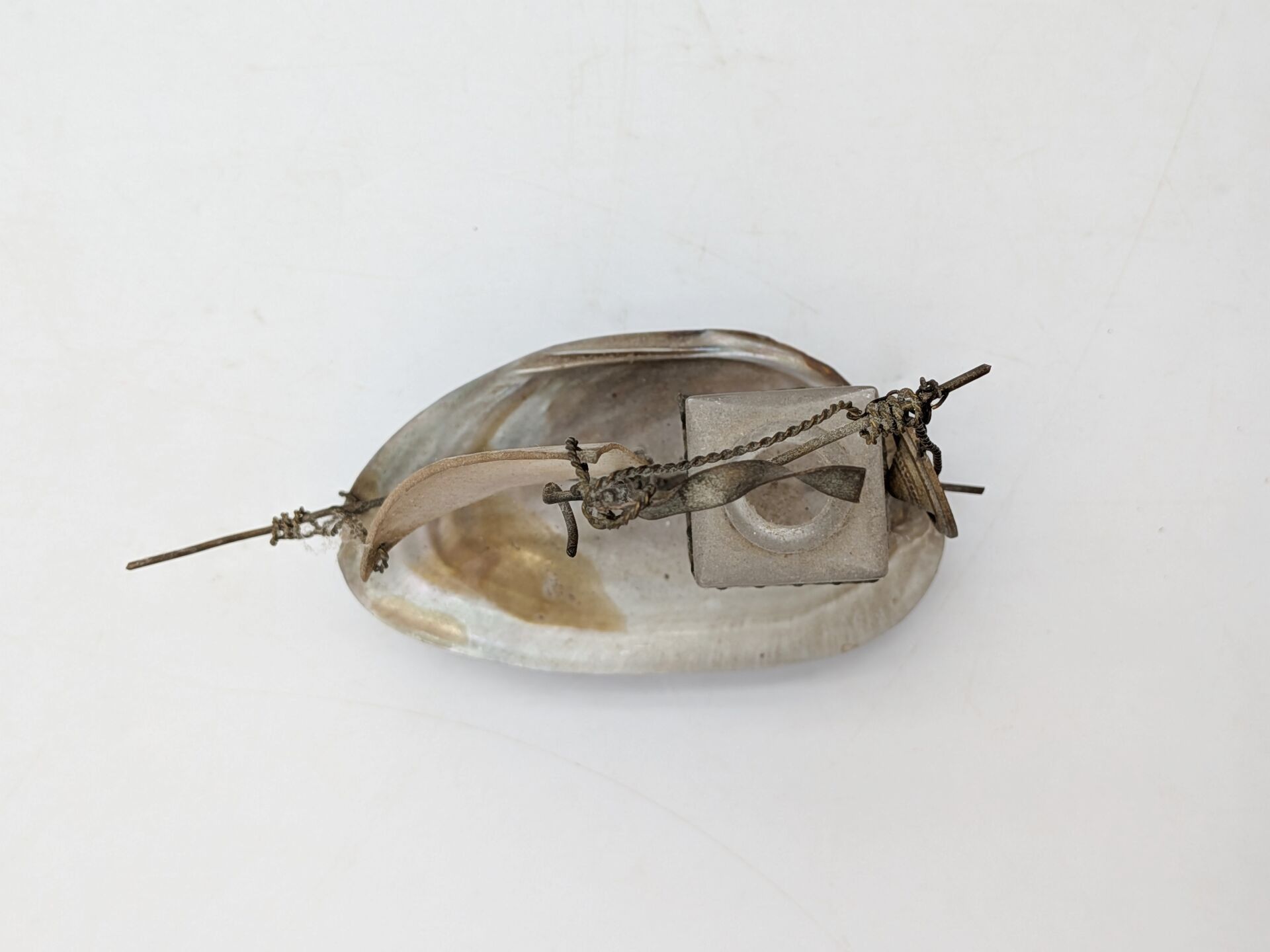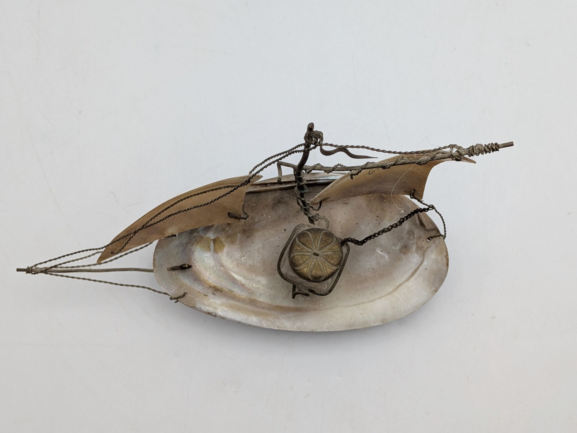 SEASIDE SOUVENIR. Reunion of 3 mother-of-pearl sailboat-shap…