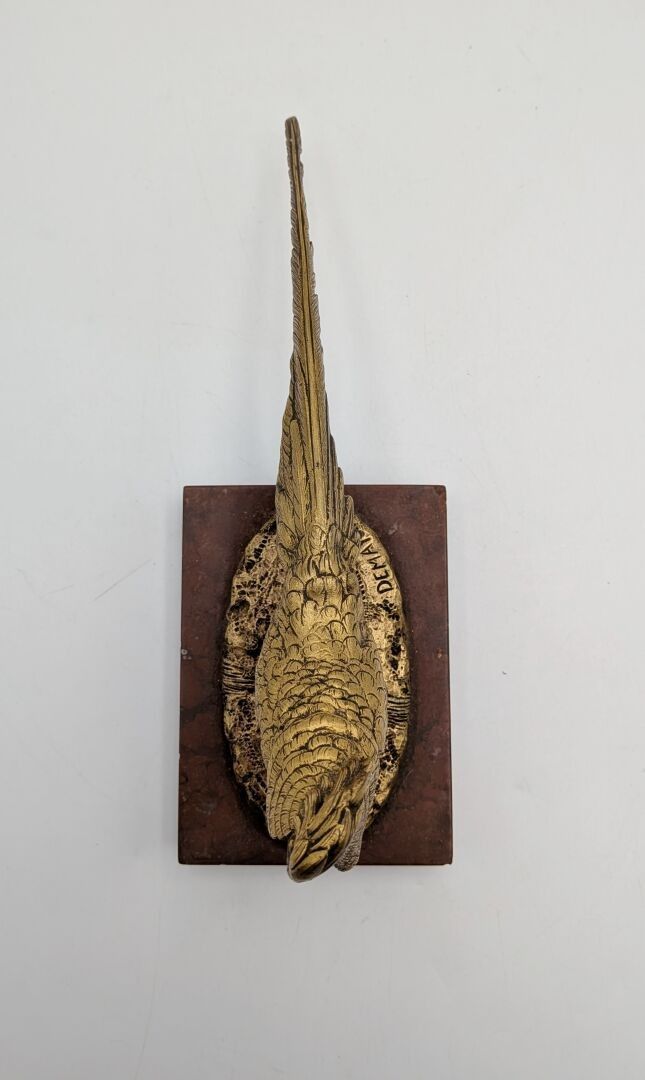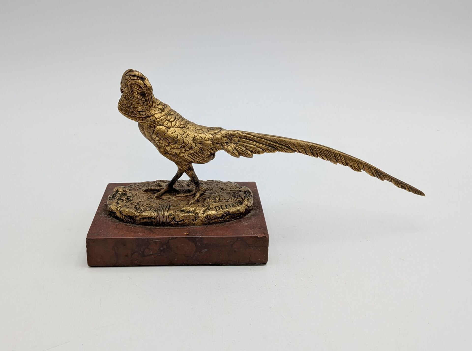 DEMAY Germain (1819-1886) "Faisan" Bronze with gold patina, signed on the terrace, marble base, D. max 12 x 23 x 8 cm