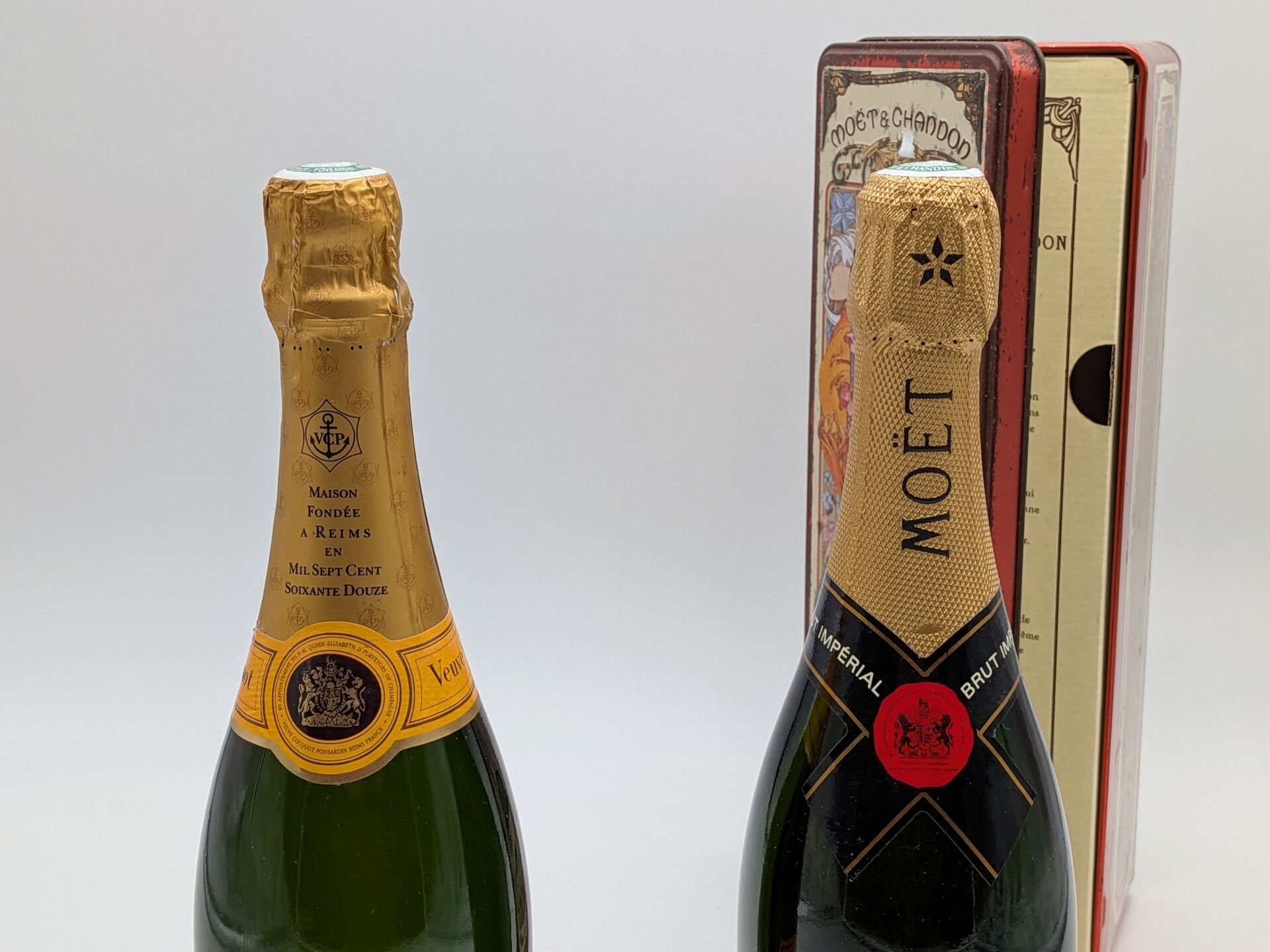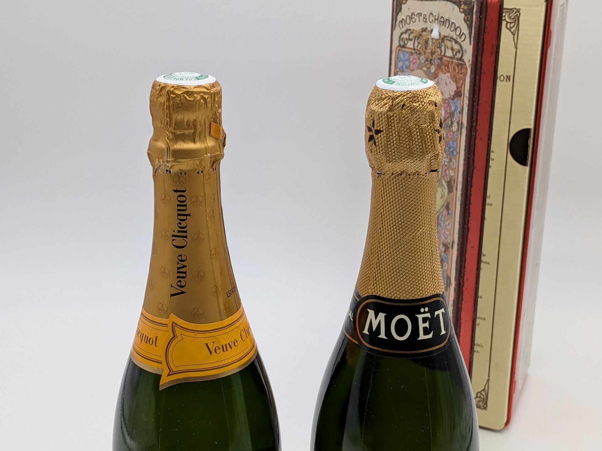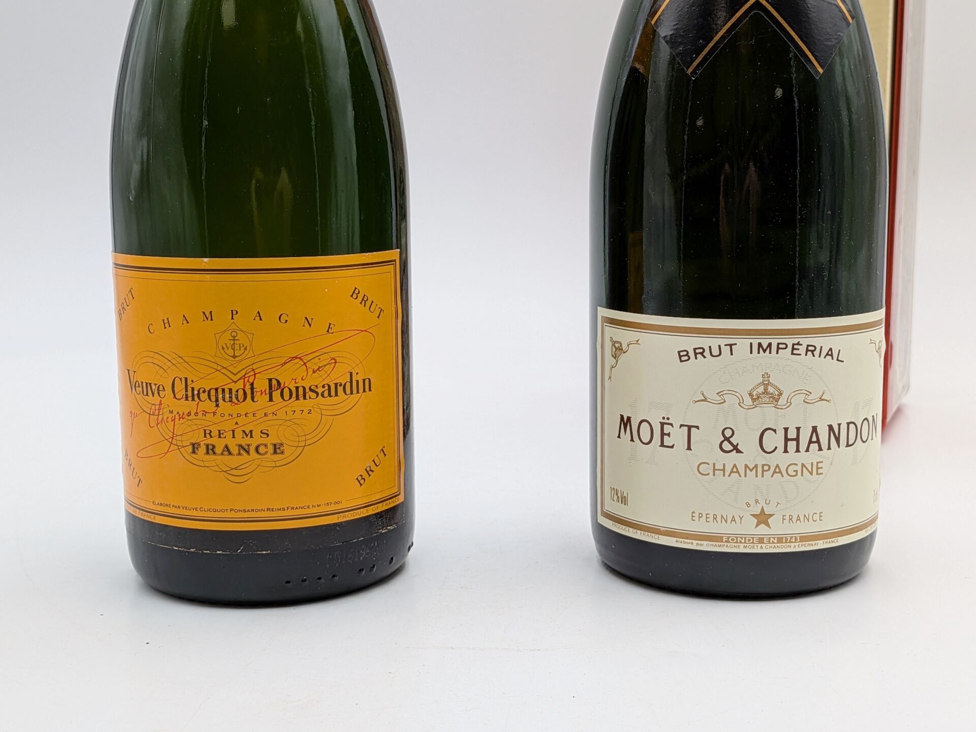 2 B CHAMPAGNE: 1 B Veuve CLICQUOT PONSARDIN Brut (boxed) + 1 B MOET & CHANDON Brut Impérial (boxed)