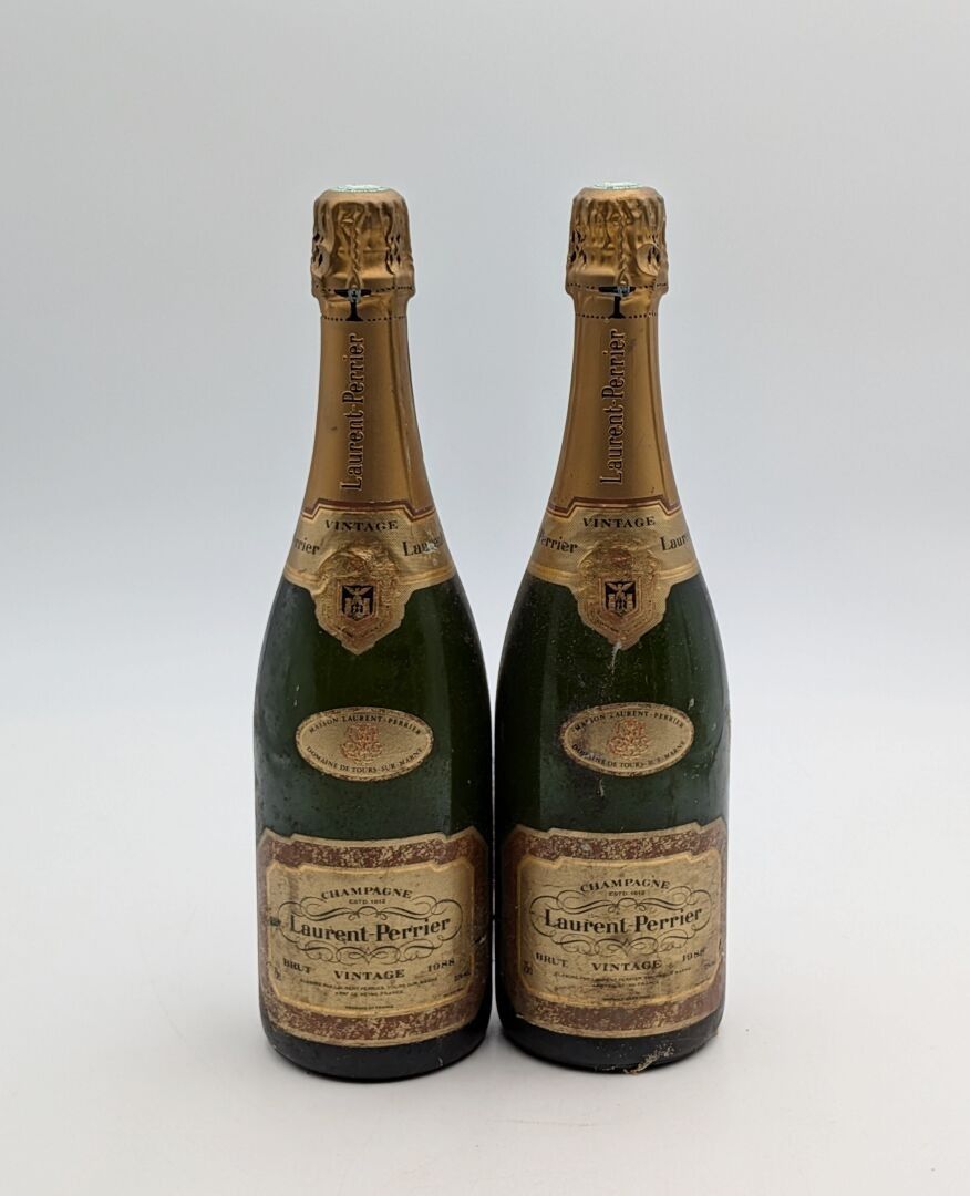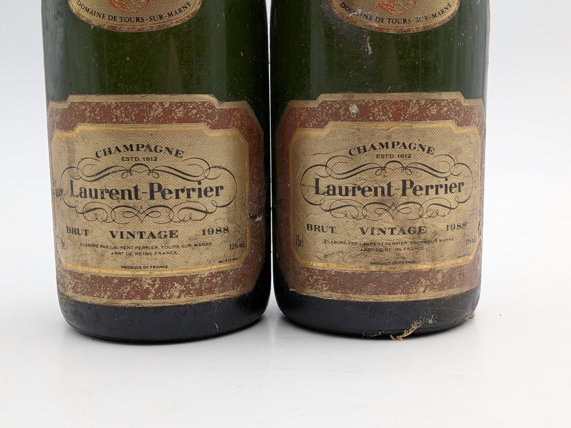 2 B CHAMPAGNE Laurent PERRIER Vintage Brut 1988, stained labels