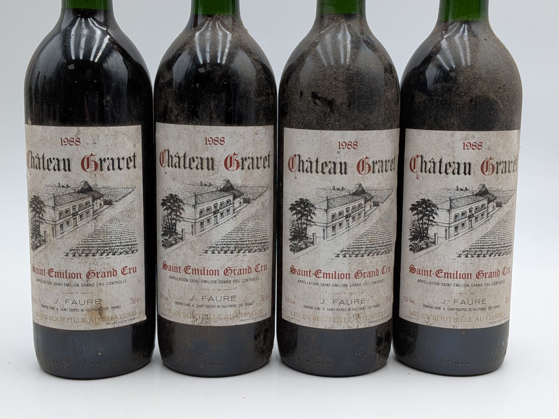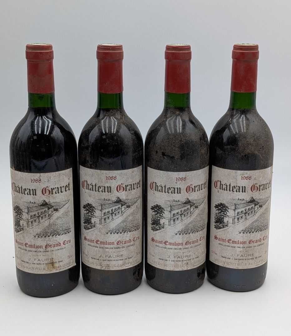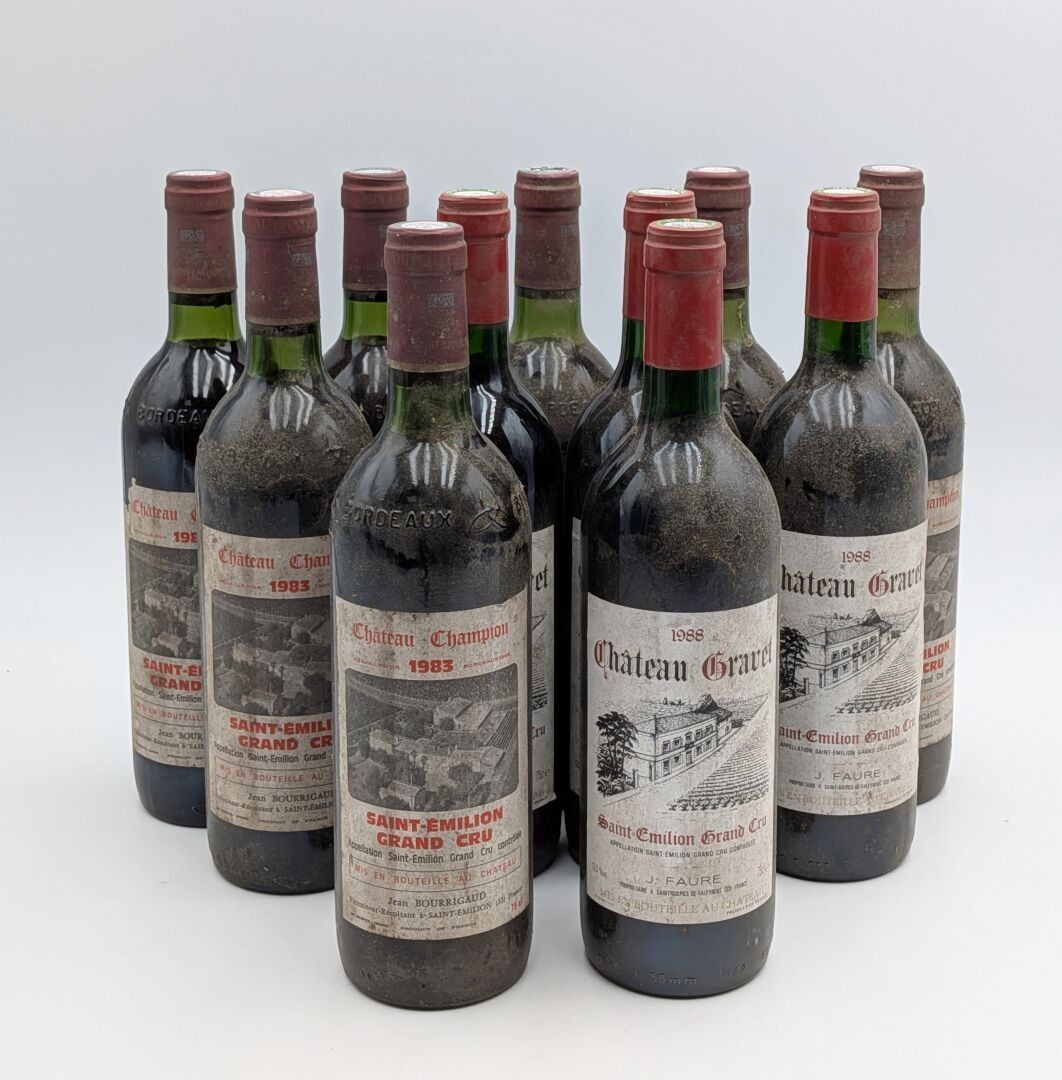 Lot of 11 B : 7 B Château CHAMPION St Emilion GC 1983 + 4 B Château GRAVET St Emilion GC 1988. Stained labels