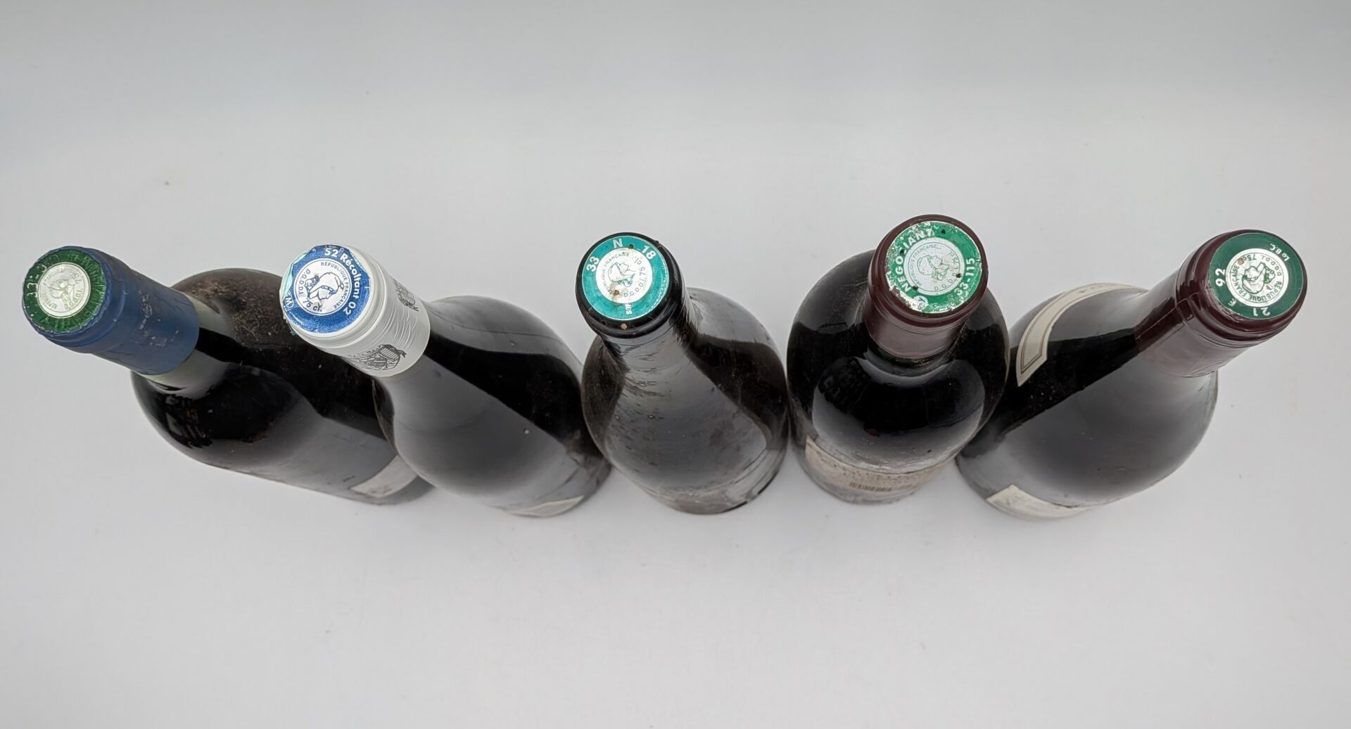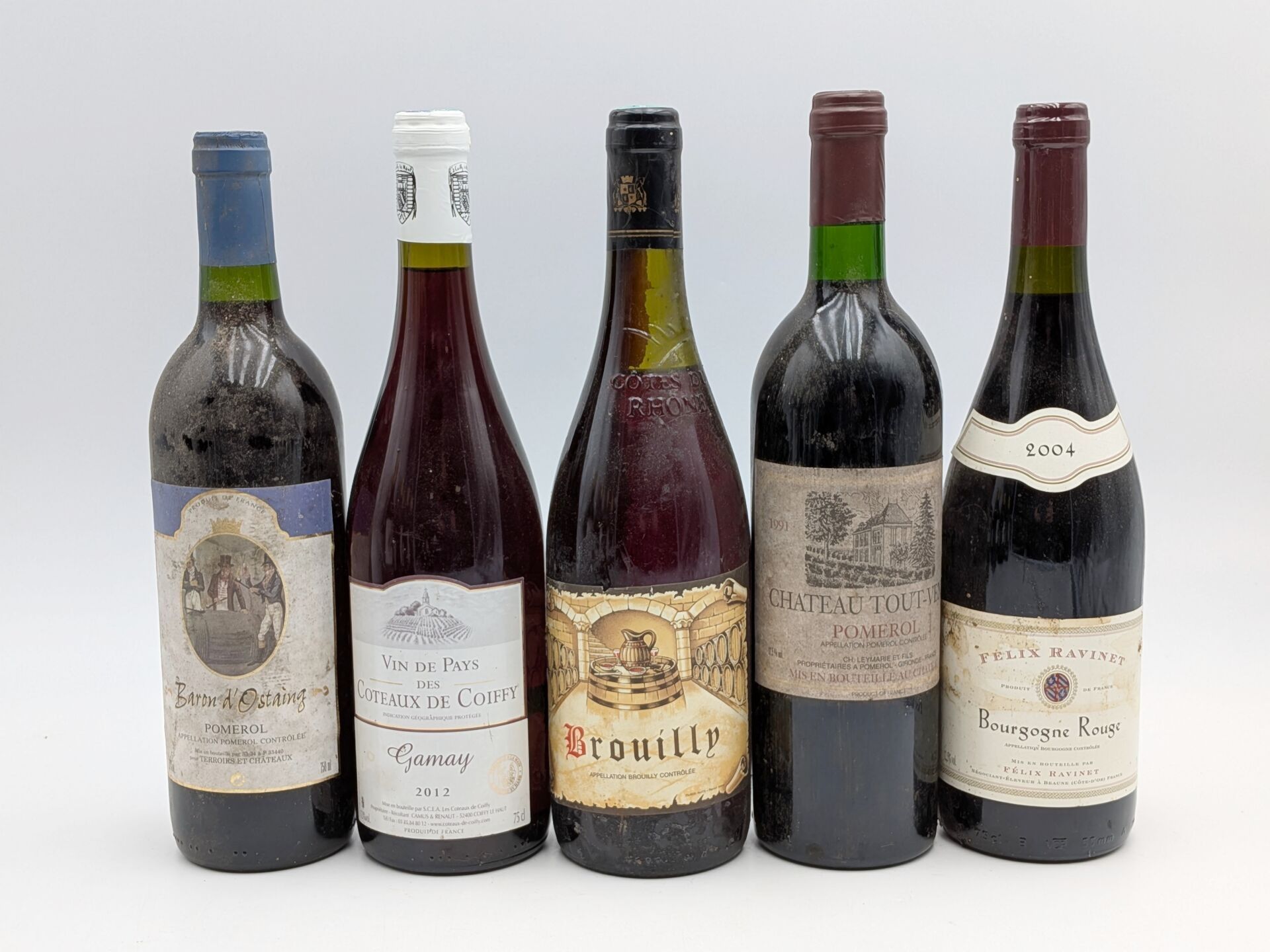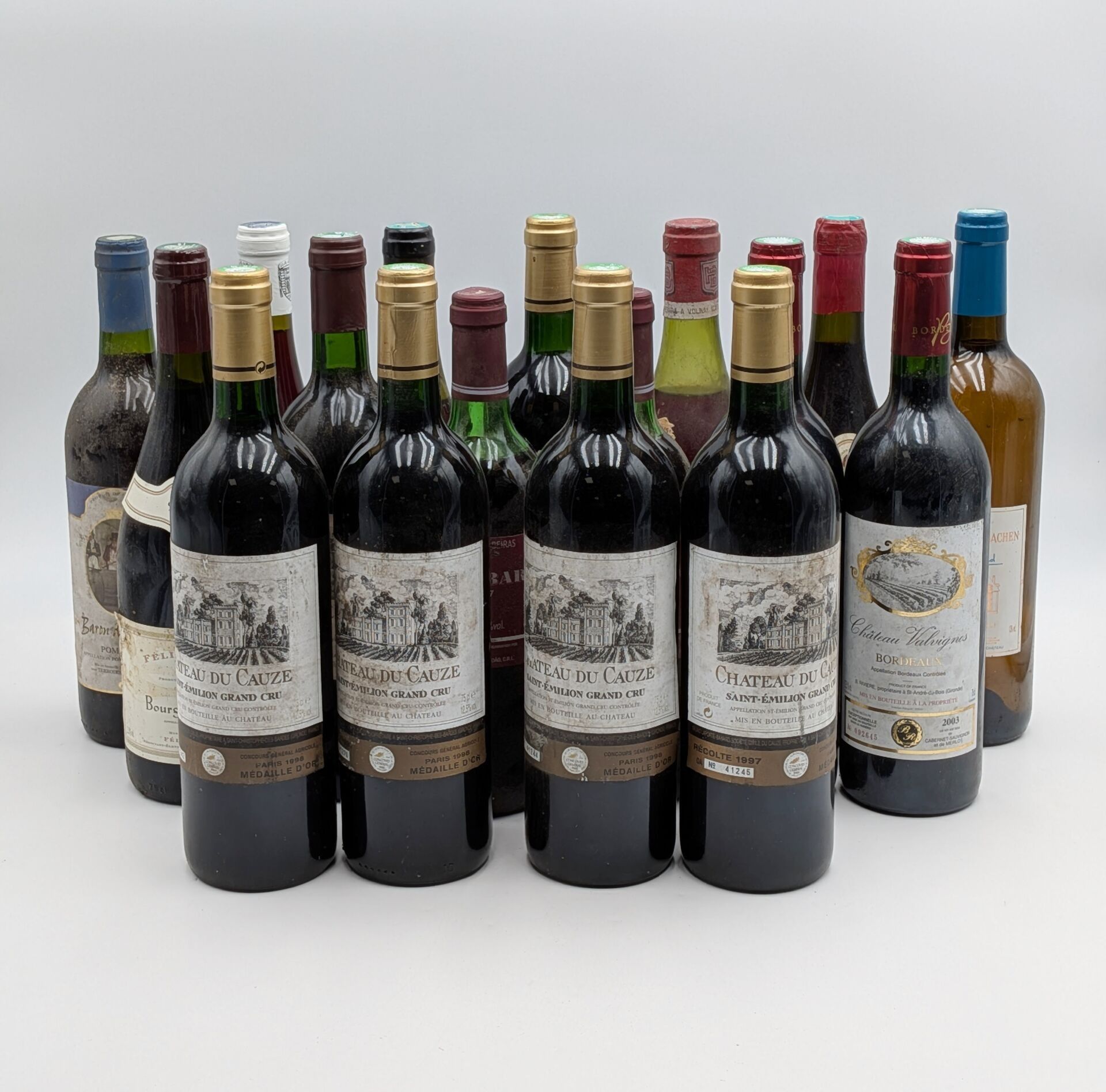 Lot of 15 Bs including 5 Bs Château DU CAUZE St Emilion GC 1997, 1 B BOURGOGNE Félix RAVINET 2004, 2 Bs Château VALVIGNES BORDEAUX 2003. Used labels, some low levels