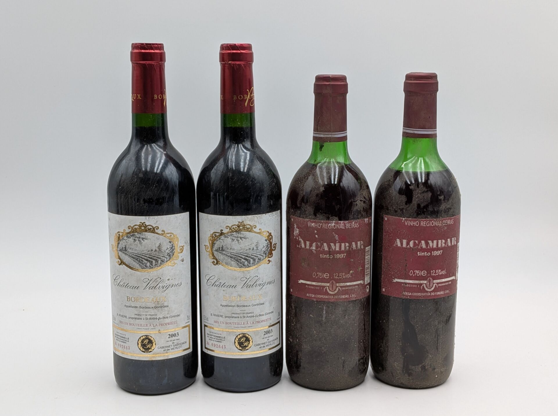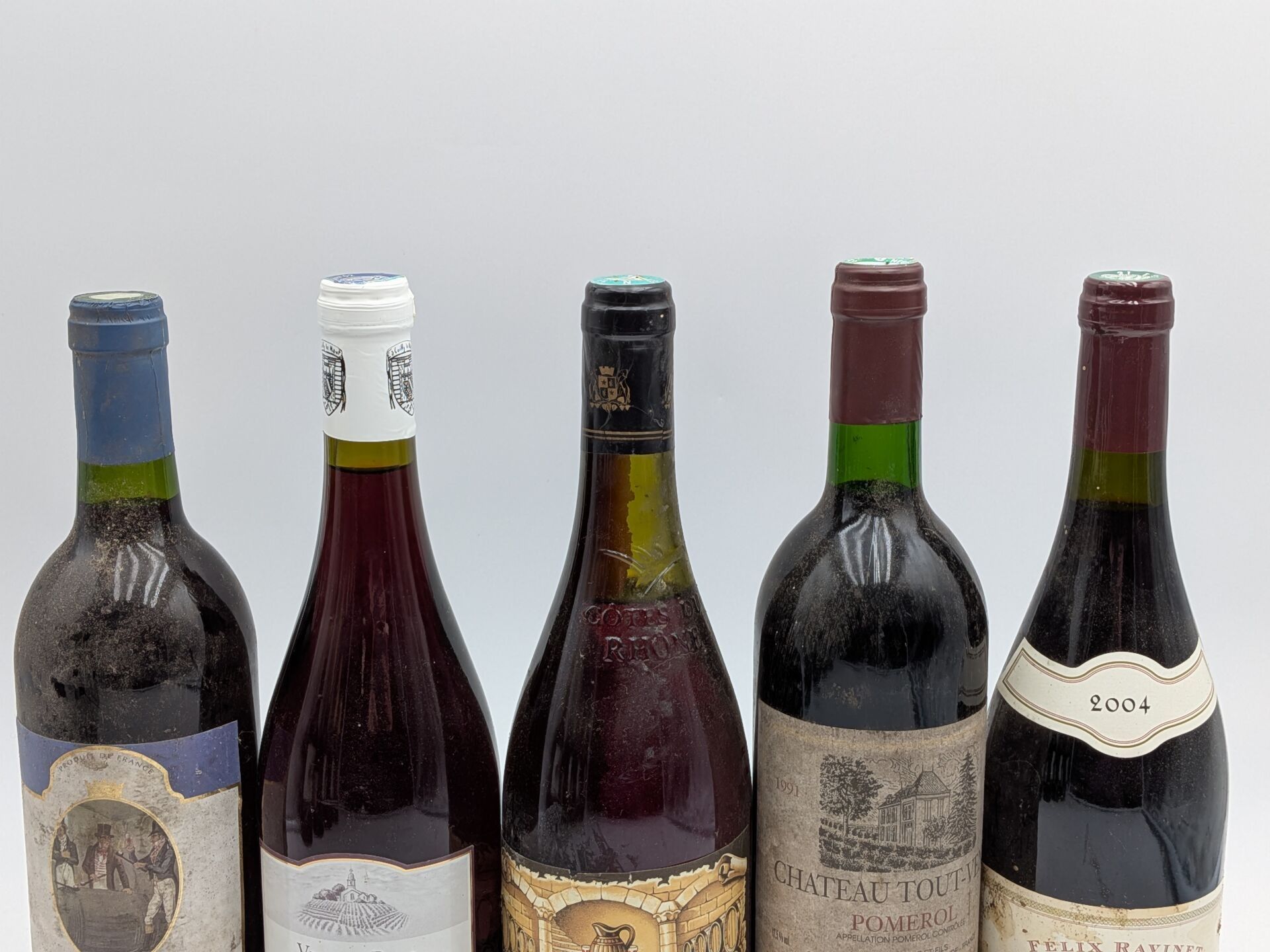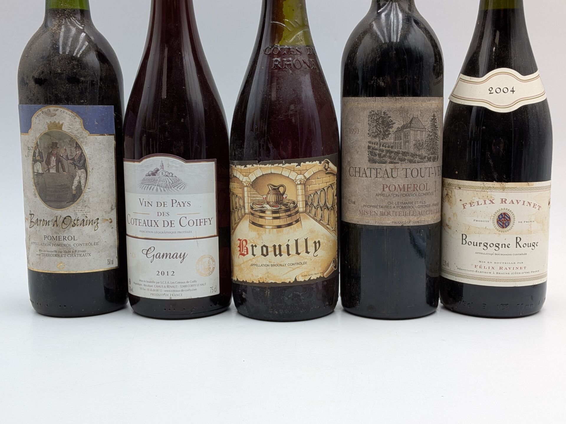 Lot of 15 Bs including 5 Bs Château DU CAUZE St Emilion GC 1997, 1 B BOURGOGNE Félix RAVINET 2004, 2 Bs Château VALVIGNES BORDEAUX 2003. Used labels, some low levels