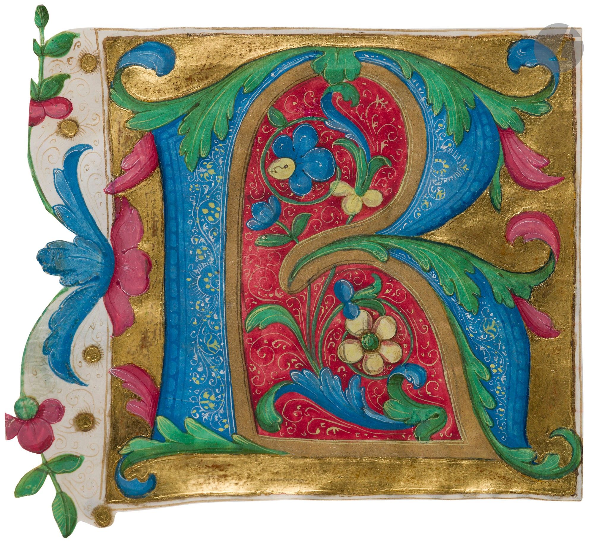 [ENLUMINATION] Large ornate and illuminated initial R (from …
