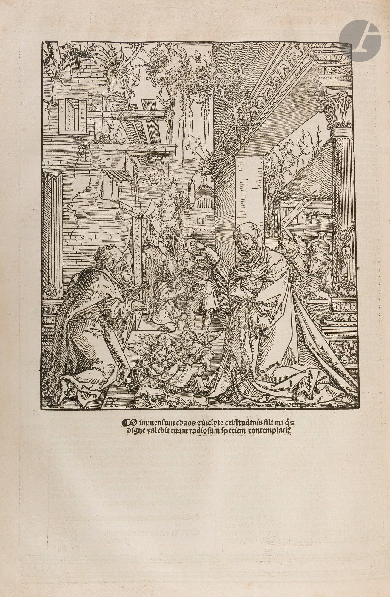 It is also richly illustrated with woodcuts, including two full-page compositions: the first illustrates the six days of creation (opposite folio 1), and the second depicts the Nativity (folio CCXLIV verso). There is also a mid-page engraving depicting the Garden of Eden and more than 140 woodcut vignettes, 80 of which are repeated several times. These woodcuts were mainly produced by the engraver Hans Springinklee (c. 1490-1550), a pupil of Albrecht Dürer, and the painter, draughtsman and engraver Erhard Schön (1491-1542).