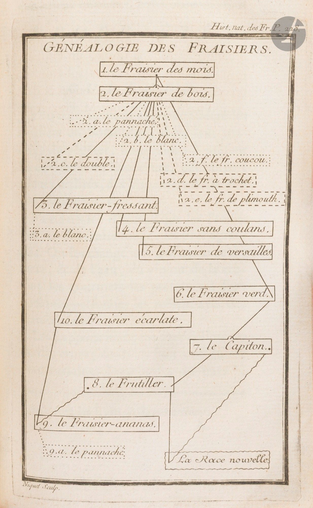 The edition is illustrated with a copper-engraved plate showing the "Genealogy of strawberry plants".