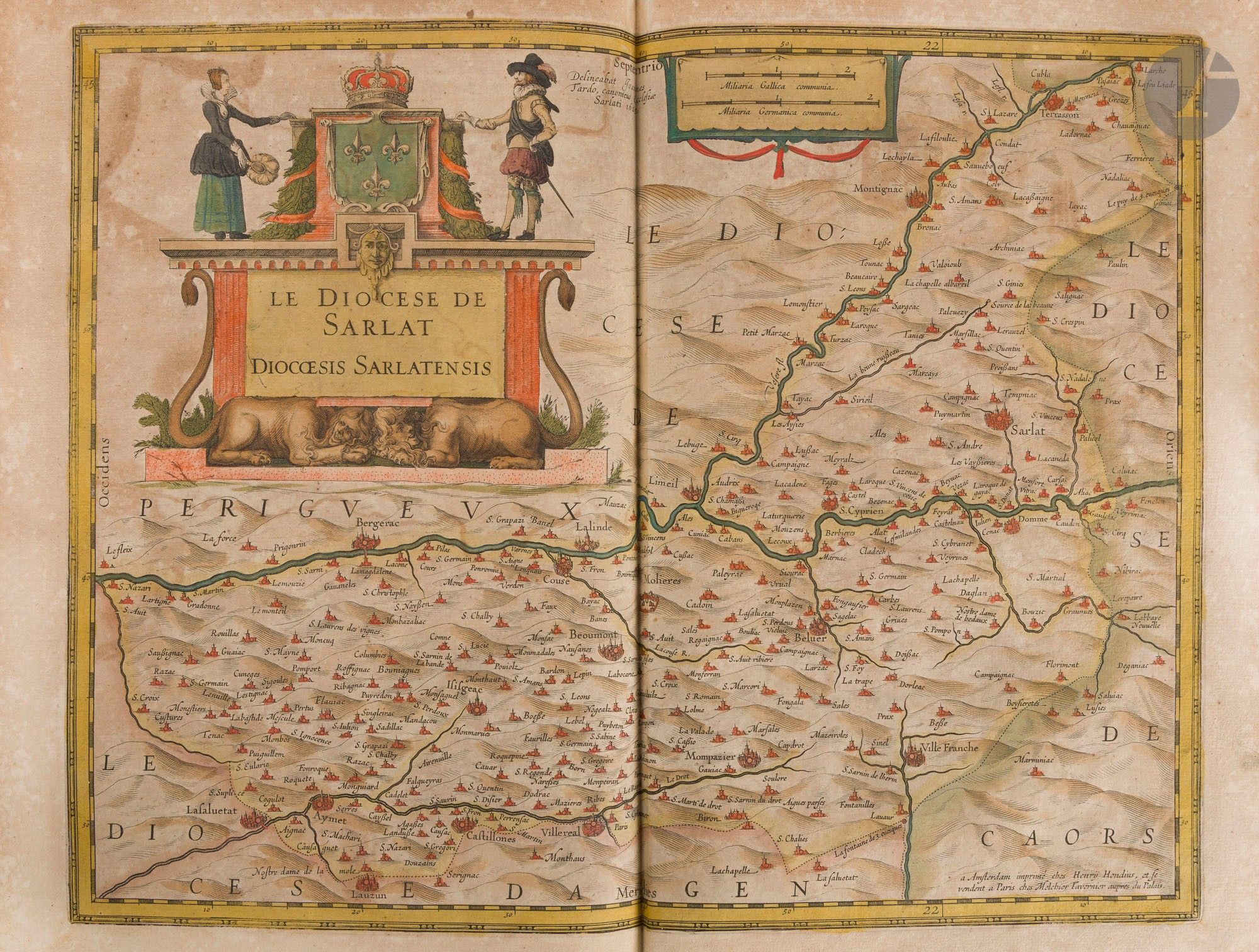 31. Bourdelois, Pays de Medoc, et la Prevoste de Born. Amsterdam: Evert Symonsz Hamersvelt, Jodocus Hondius. - 32. Map of the Country of Xaintonge. Amsterdam: Jodocus and Henricus Hondius. - 33. Totius Lemovici et Consinium provinciaru(m) quantum ad diœcesin Lemovicensen spectant. By cartographer Jean Fayen (1530?-1616). With a plan of the town of Limoges. - 34. The Diocese of Sarlat. Diocœsis Sarlatensis. Amsterdam: Henricus Hondius; Paris: Melchior Tavernier, 1625. - 35. The Bearn Country. Engraved by Evert Symonsz Hamersvelt. - 36. Carte et description generale du Dauphiné Avec les Confins des Païs et Provinces voisines. Le tout Racourcy et reduict Par Iean de Beins Ingénieur et Geographe du Roy. Amsterdam: Henricus Hondius. - 37. Provincia. La Provence. Amsterdam: Jodocus and Henricus Hondius, 1621. - 38. The Principality of Orange and the County of Venaissin. Amsterdam: Jodocus and Henricus Hondius, 1627. Engraved by Evert Symonsz Hamersvelt. - 39. Lothairingia septentrionales. Loraine. (No. 46 in the index.) - 40. Burgundiæ comitatus. Franche Comté. (n° 41 in the index).