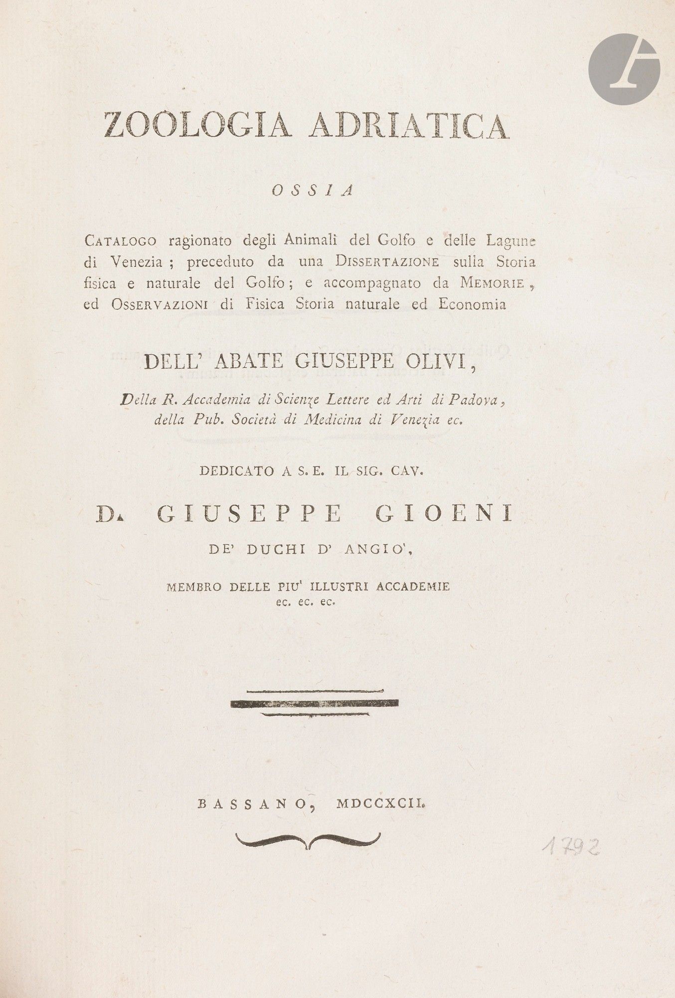 OLIVI (Giuseppe). Zoologia adriatica ossia Catlogi ragionato…