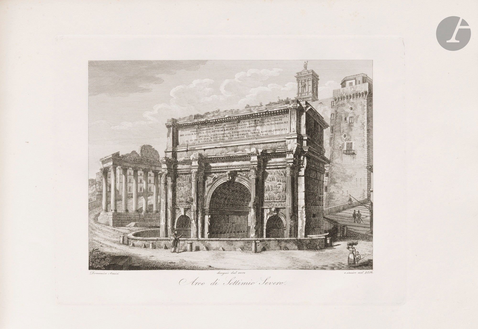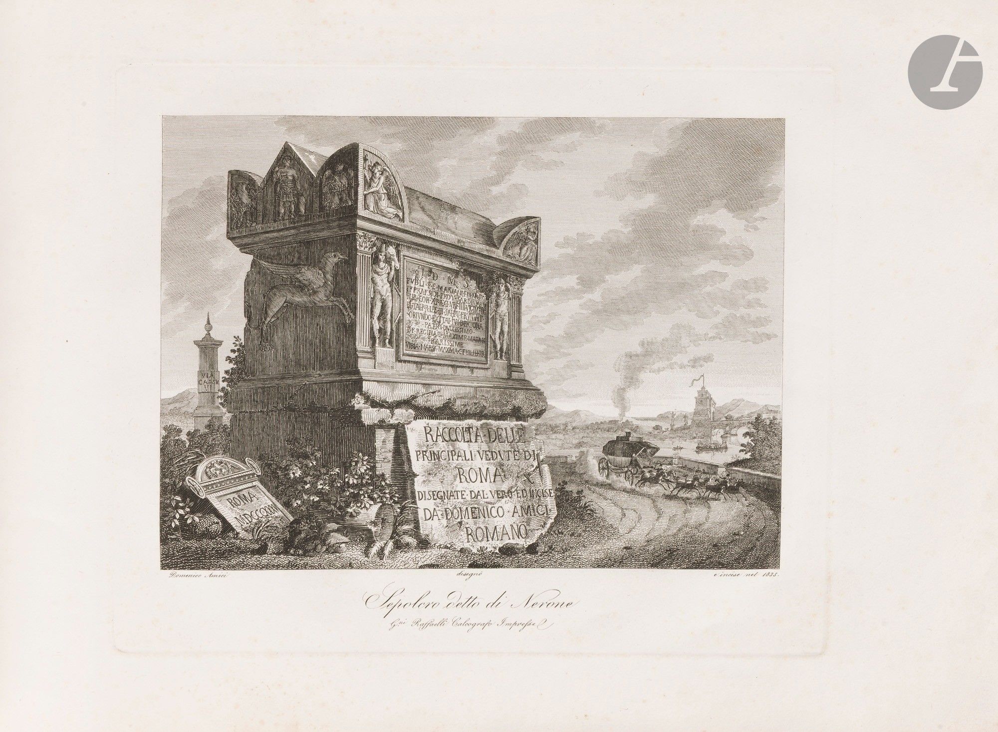 This very fine album contains 40 plates of views of the ruins of Rome by the Italian draughtsman and engraver Domenico Amici (1808-18.).