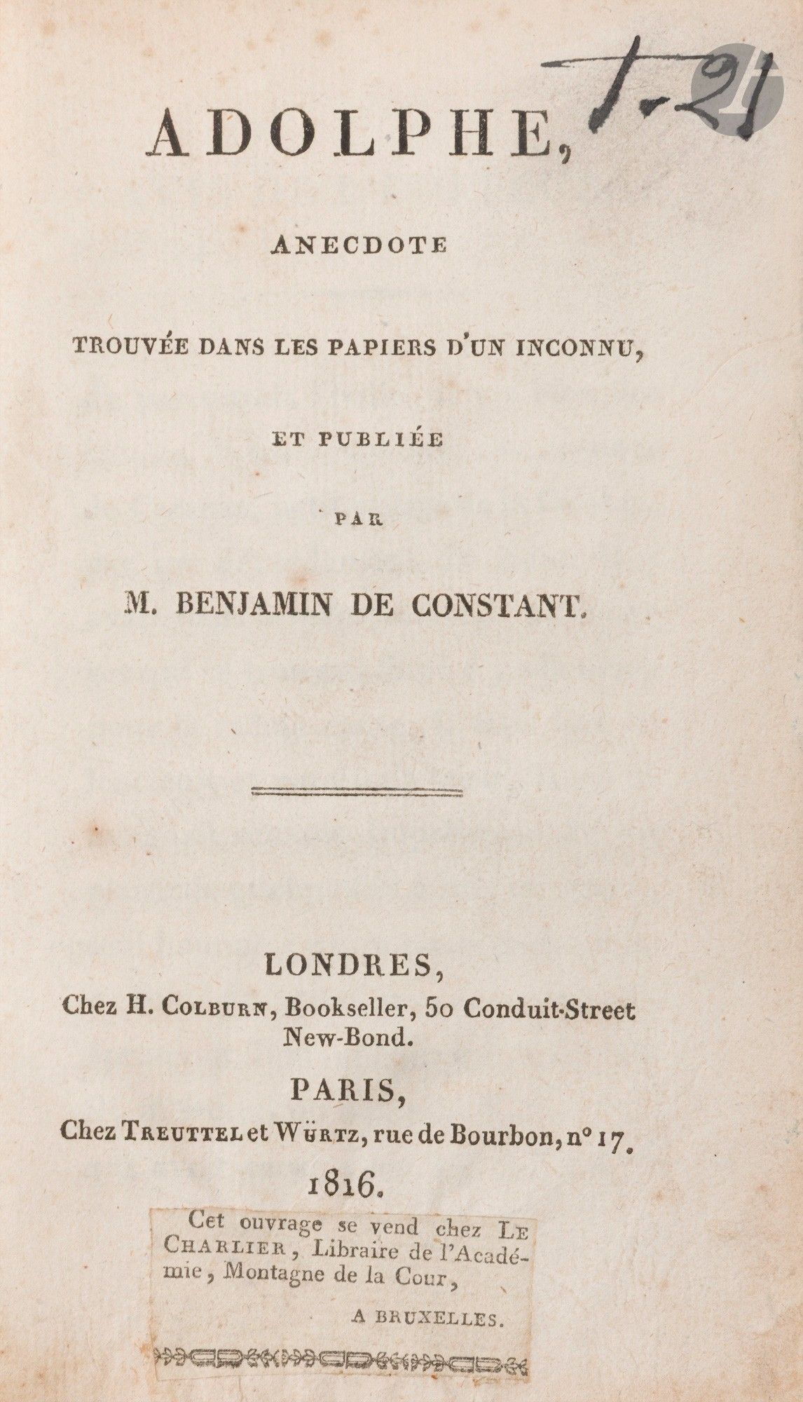 CONSTANT (Benjamin). Adolphe, anecdote trouvé dans les papie…