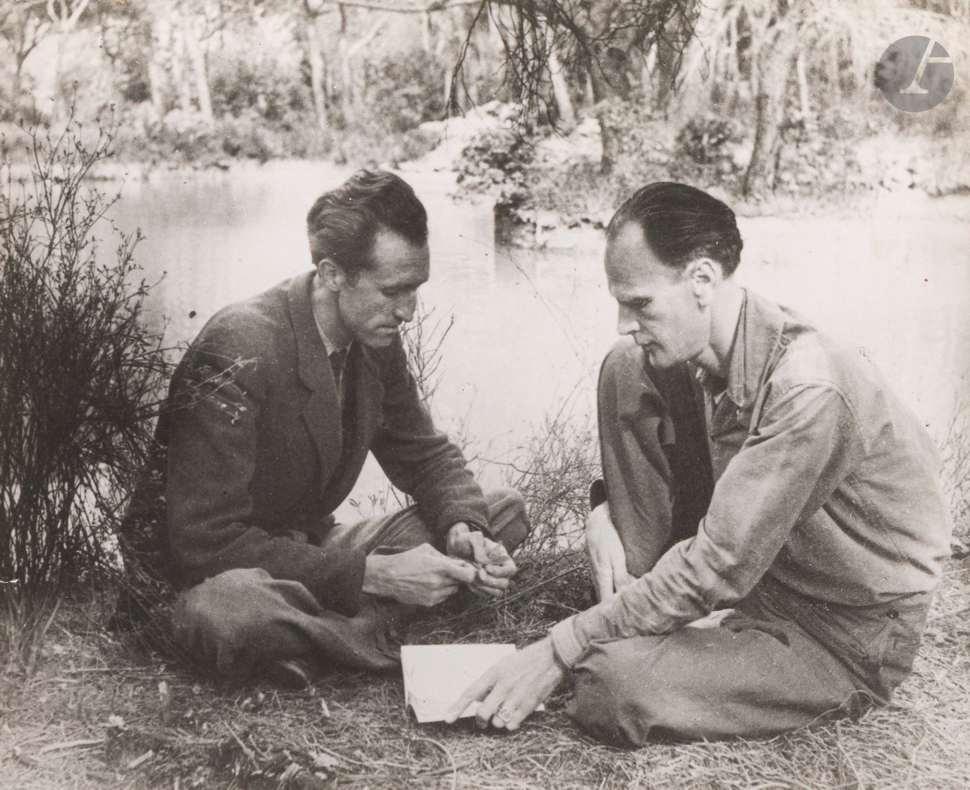 A very fine copy in a modern binding, with an original photograph of Dietrich with Lanza del Vasto mounted at the head. The verso indicates that the photograph was taken by Rosy Rey. It also says: "Return to: JD Jolly Monge: JD Jolly Monge". This is the photographer Jean Daniel Jolly Monge, who took part in the republication of texts by Lanza del Vasto and Dietrich.