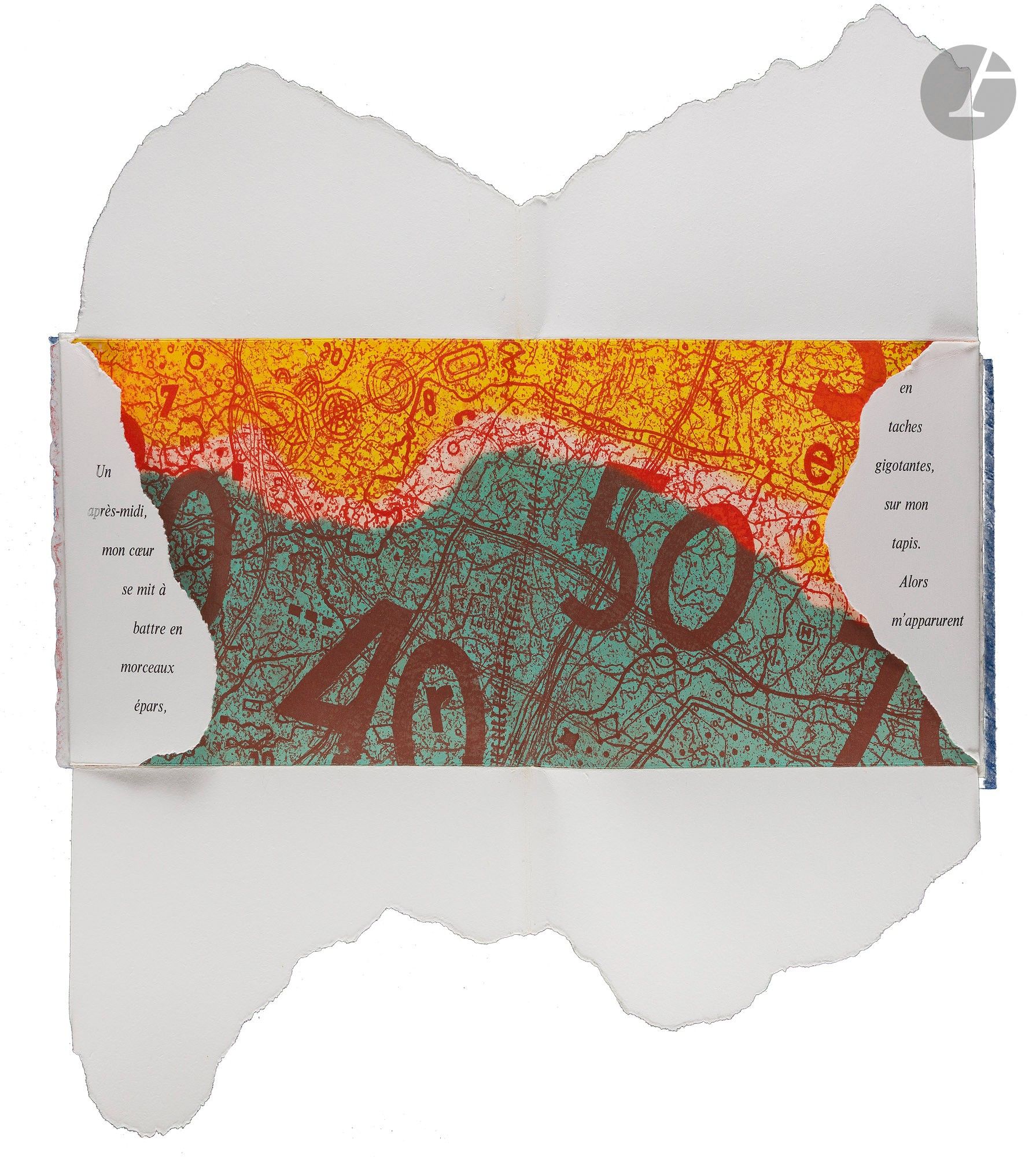 [Montreuil: Shirley Sharoff, 2001]. - 180 x 232 : (8 ff.), illustrated cover. Leaves, torn and perforated blue rag paper folder with red and gilt string binding, slipcase.
