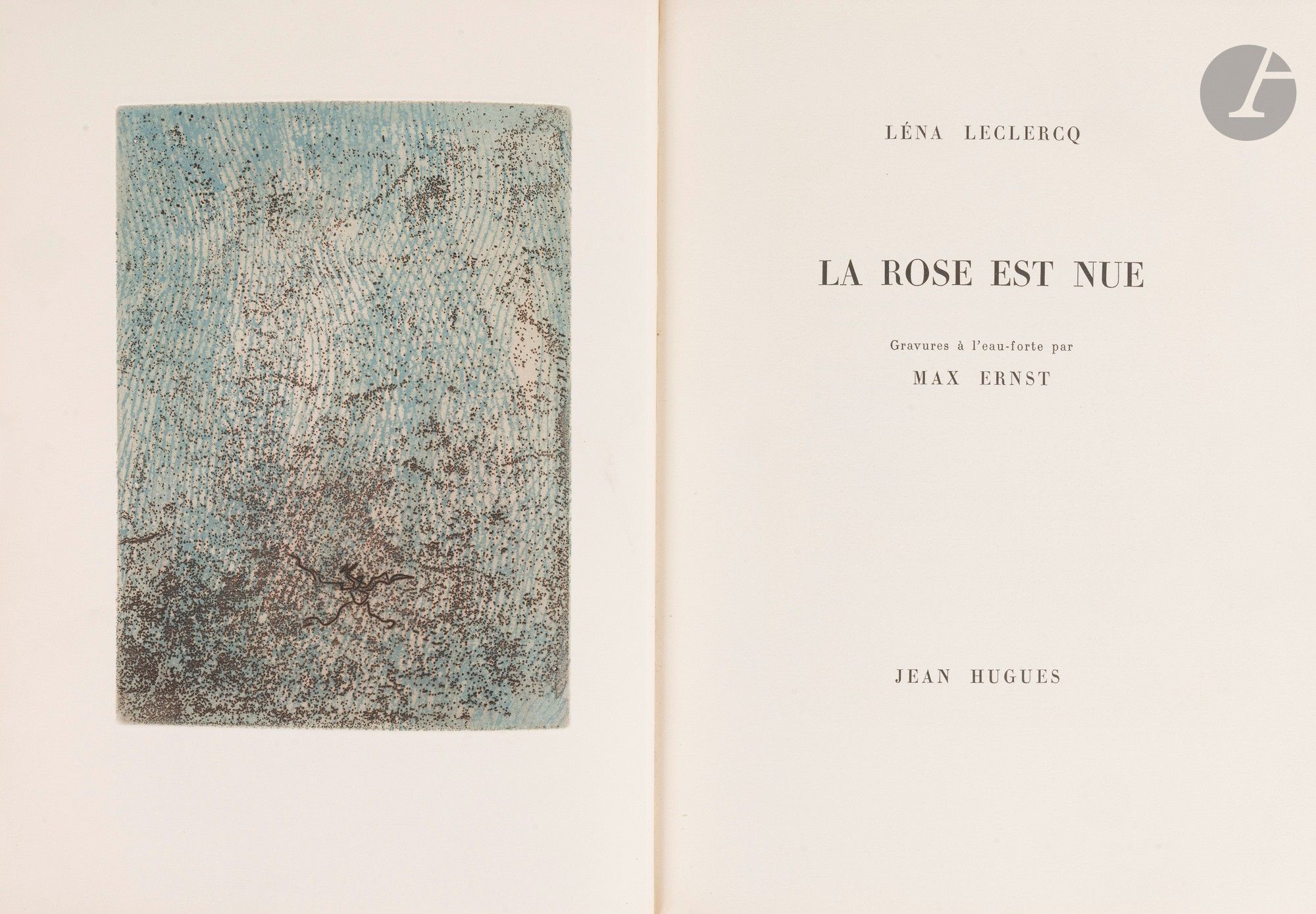 A precious copy, bound in the period by Georges Leroux, and enriched with a trial proof of the penultimate etching in the book, justified and signed by Max Ernst, mounted on a mitre at the head.