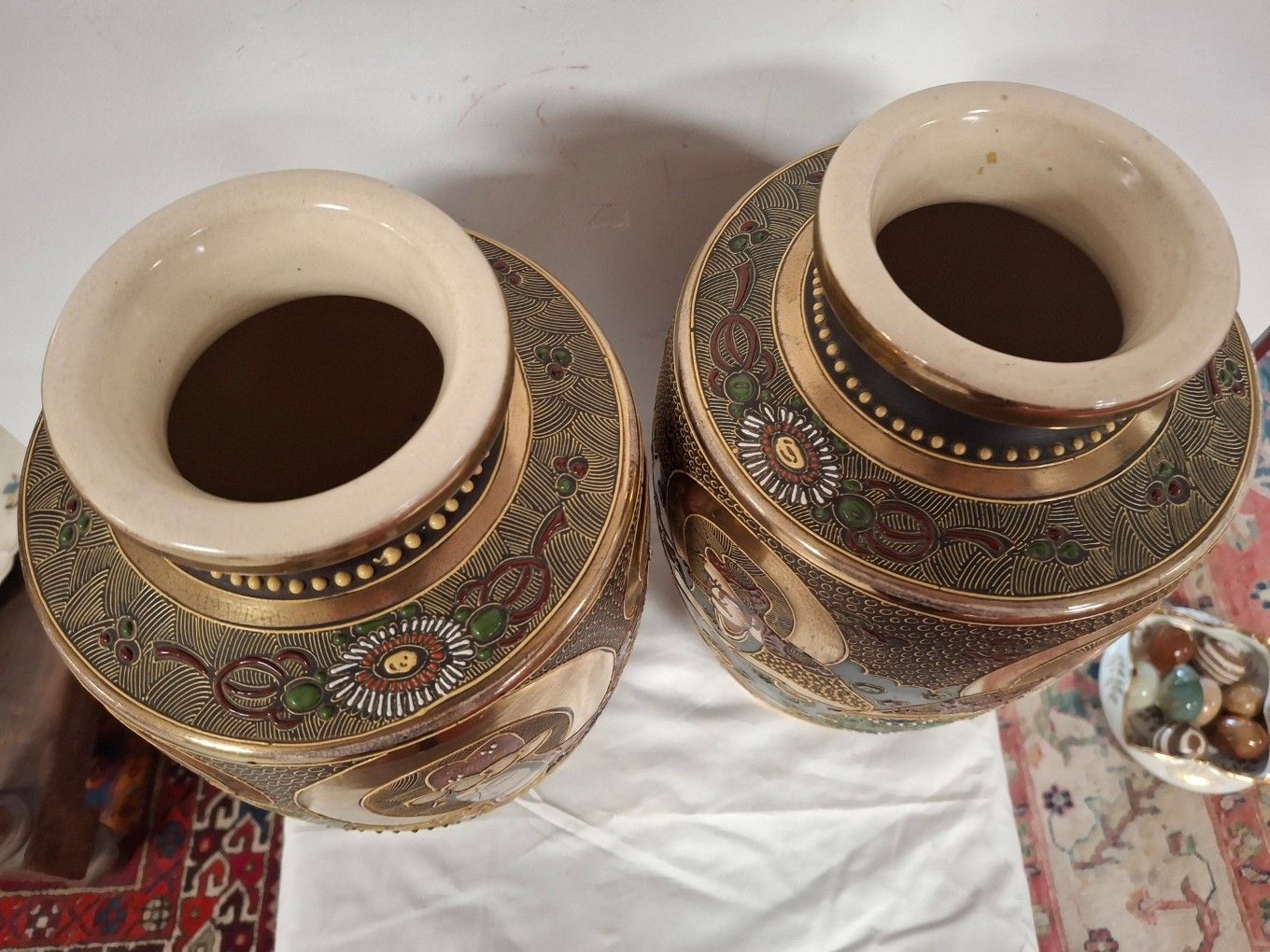 Pair of Satsuma earthenware vases decorated with male and fe…