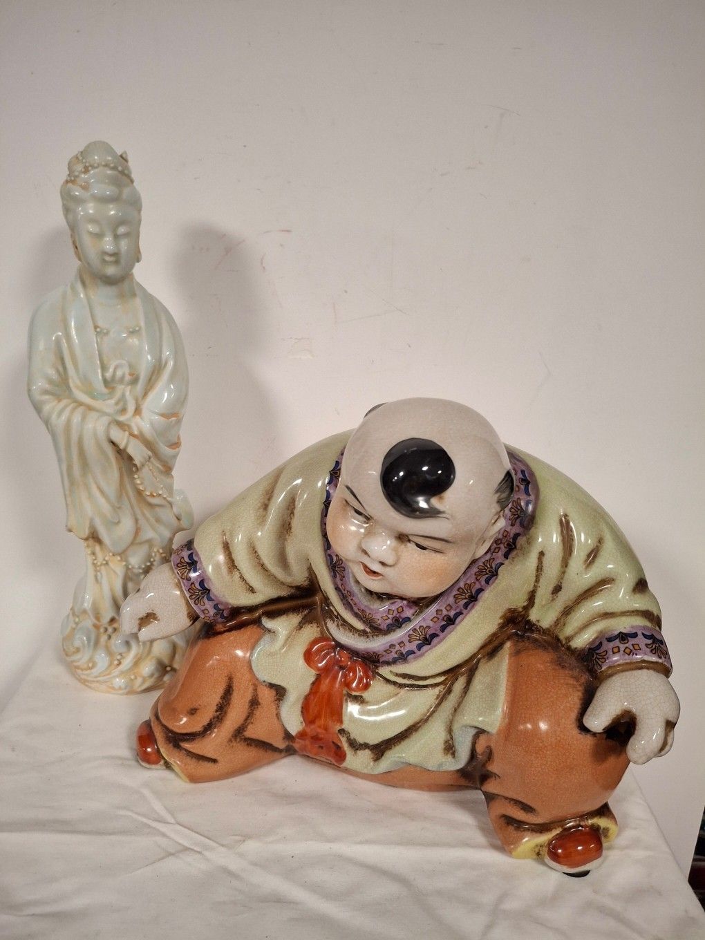 Ceramic Geisha (modern copy) (H 32 cm) + Polychrome ceramic Sumo